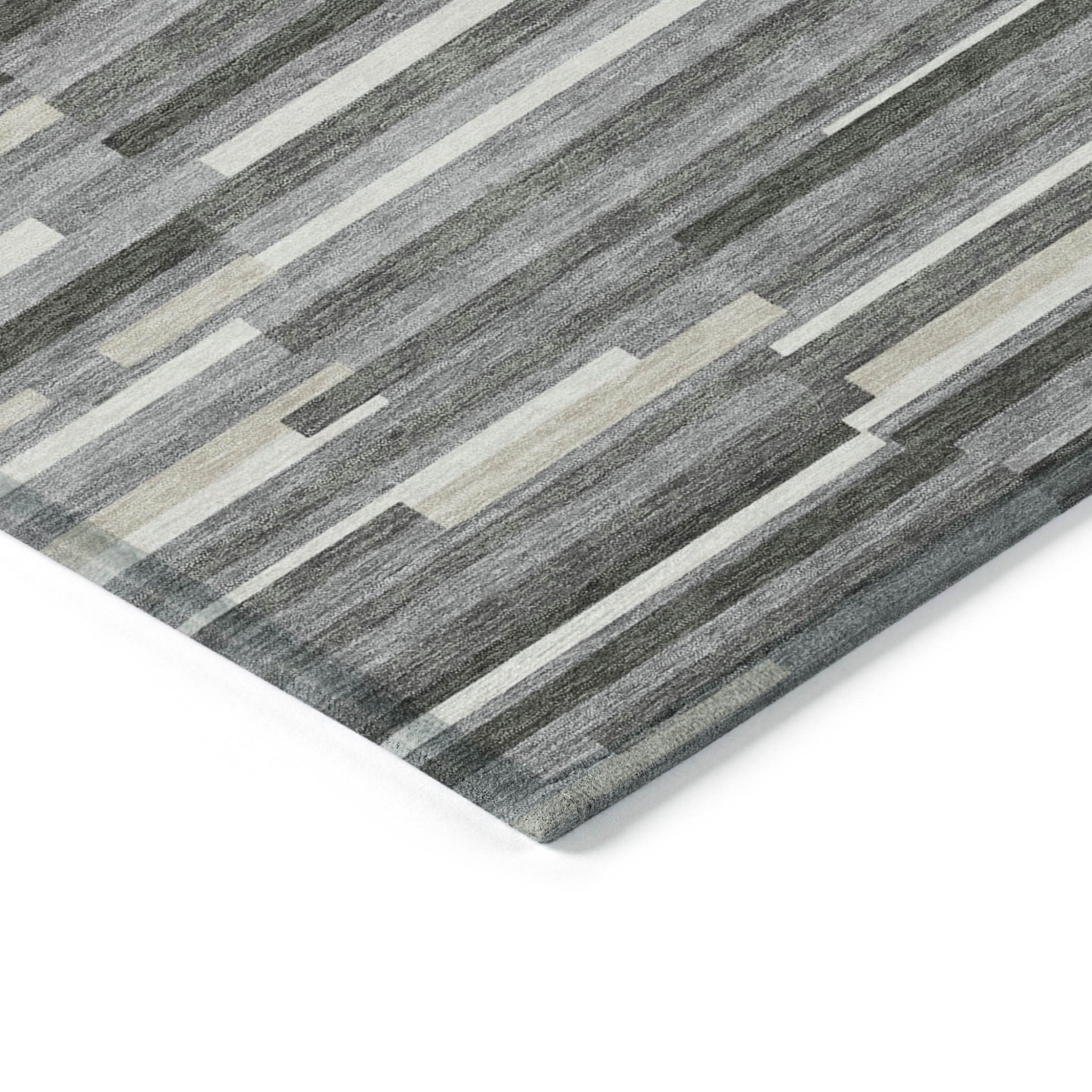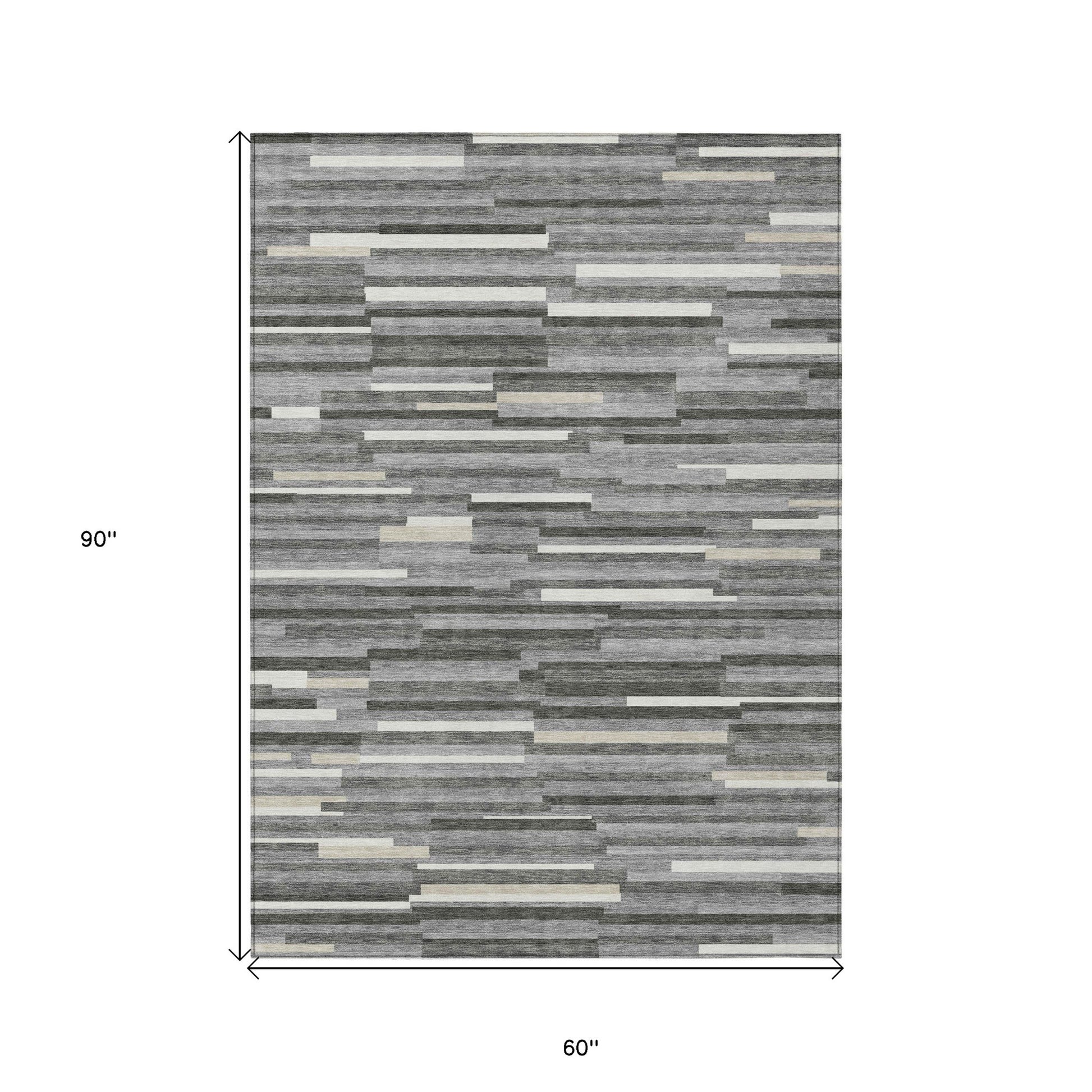 Tabselect Home Line 5' X 8' Gray And Ivory Striped Washable Indoor Outdoor Area Rug