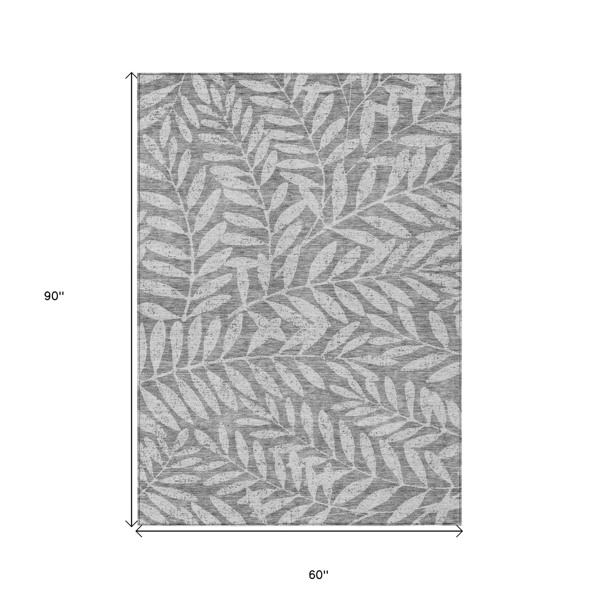 Tabselect Home Line 5' X 8' Gray And Light Gray Floral Washable Indoor Outdoor Area Rug
