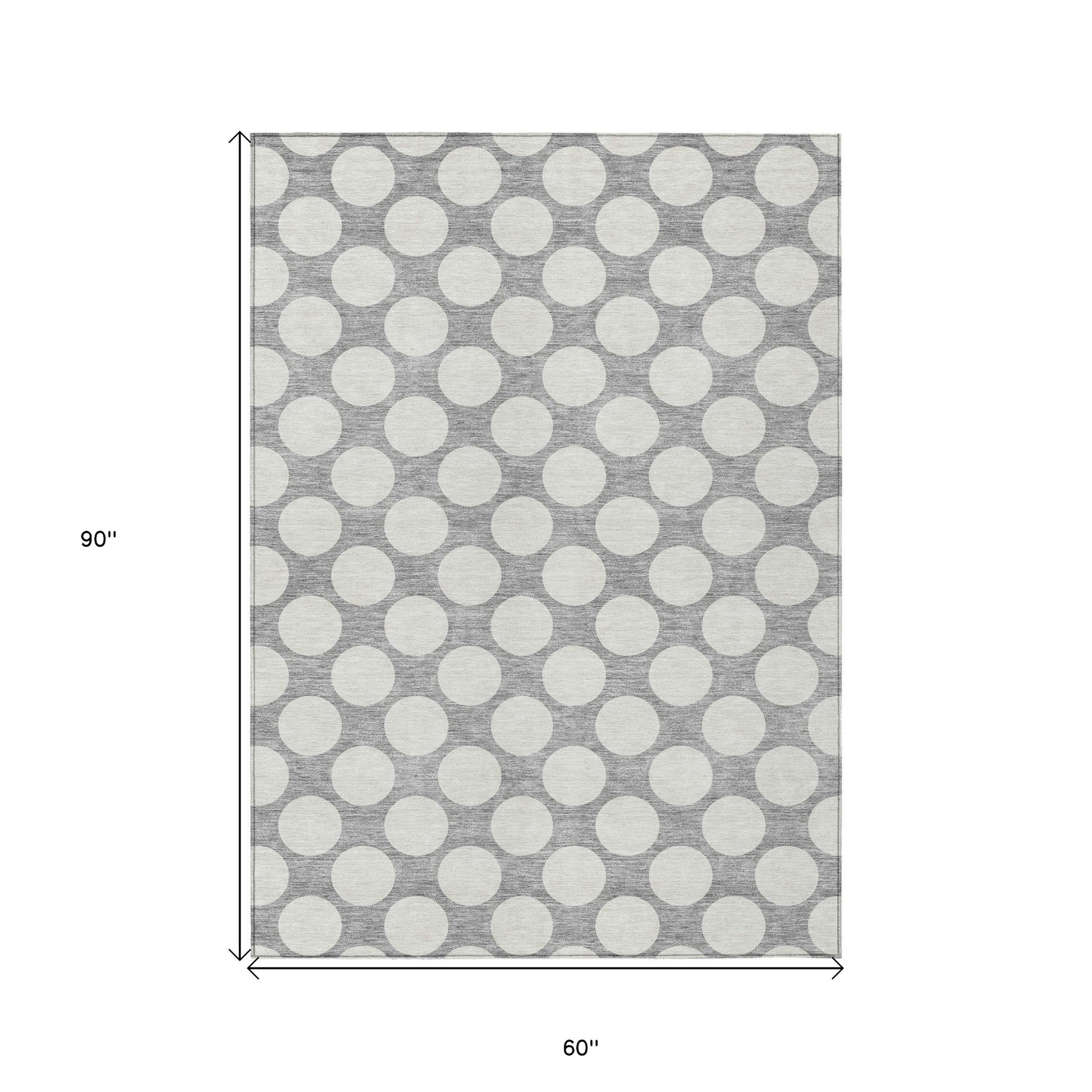 Tabselect Home Line 5' X 8' Gray And Silver Polka Dot Washable Indoor Outdoor Area Rug