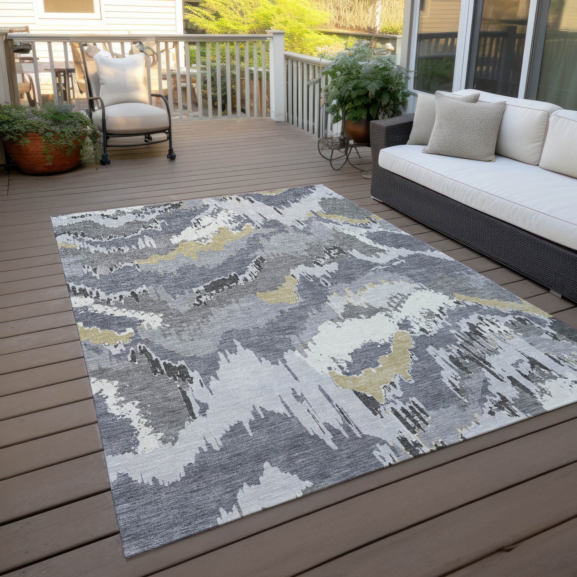 Add some artistry to your room with this 5-foot x 8-foot gray silver and charcoal abstract washable indoor outdoor area rug. This rectangle shaped rug features a abstract design that will work well both indoors or out. A classic shape marries with good looking design for your living room, hall, bedroom, porch, patio, or poolside. Ideal for outdoor spaces or high traffic areas with kids and pets, this rug is made from heavy duty polyester that is stain resistant to help repel water, dirt, and stains. Makes a great way to dress up your patio, porch, or poolside, but also works well as a durable and easy to maintain option in the kitchen, family room, or mudroom. 60-inch h x 90-inch w x 0.19-inch d.