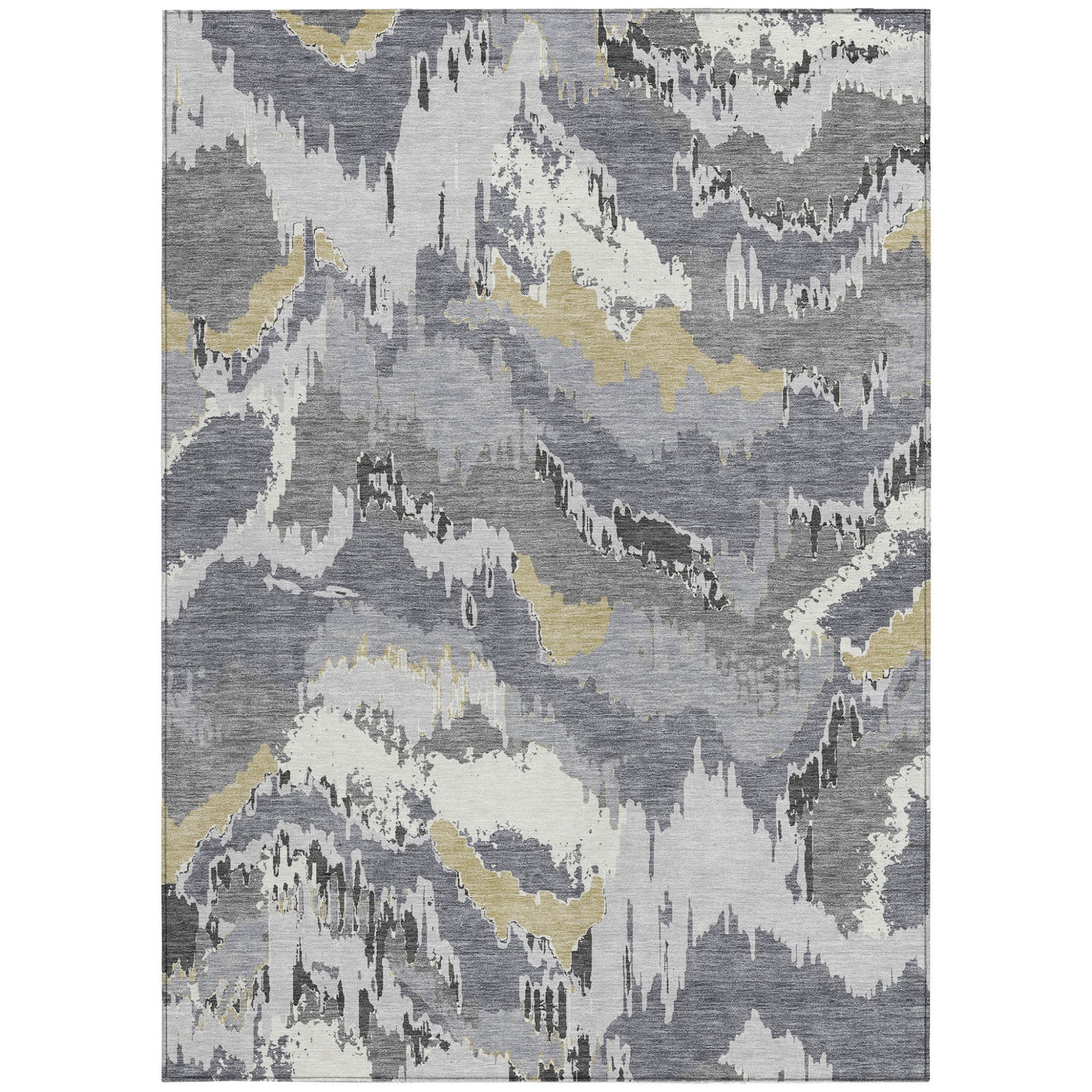 Tabselect Home Line 5' X 8' Gray Silver And Charcoal Abstract Washable Indoor Outdoor Area Rug