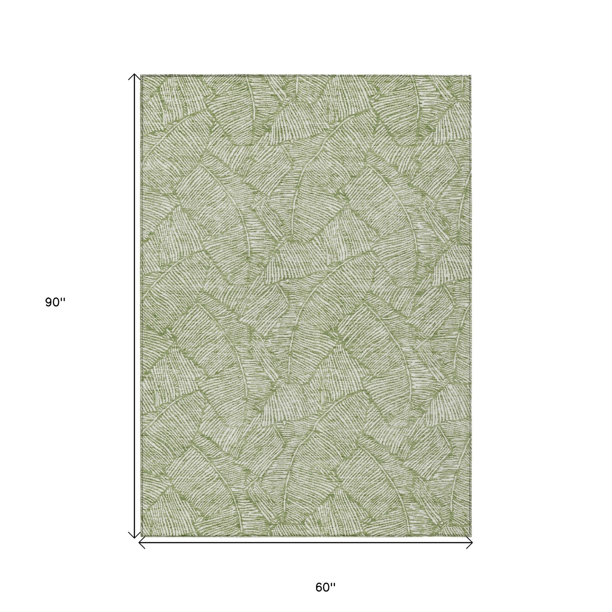 Tabselect Home Line 5' X 8' Green And Ivory Floral Washable Indoor Outdoor Area Rug