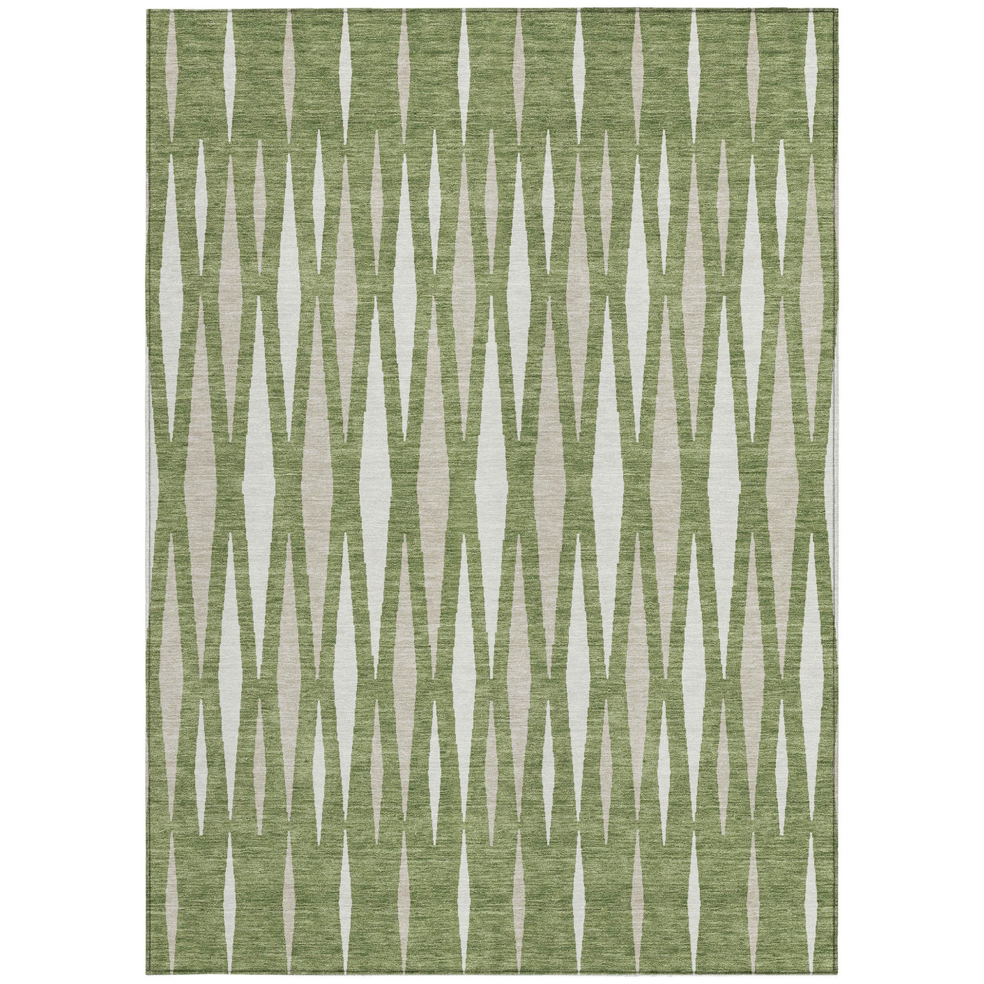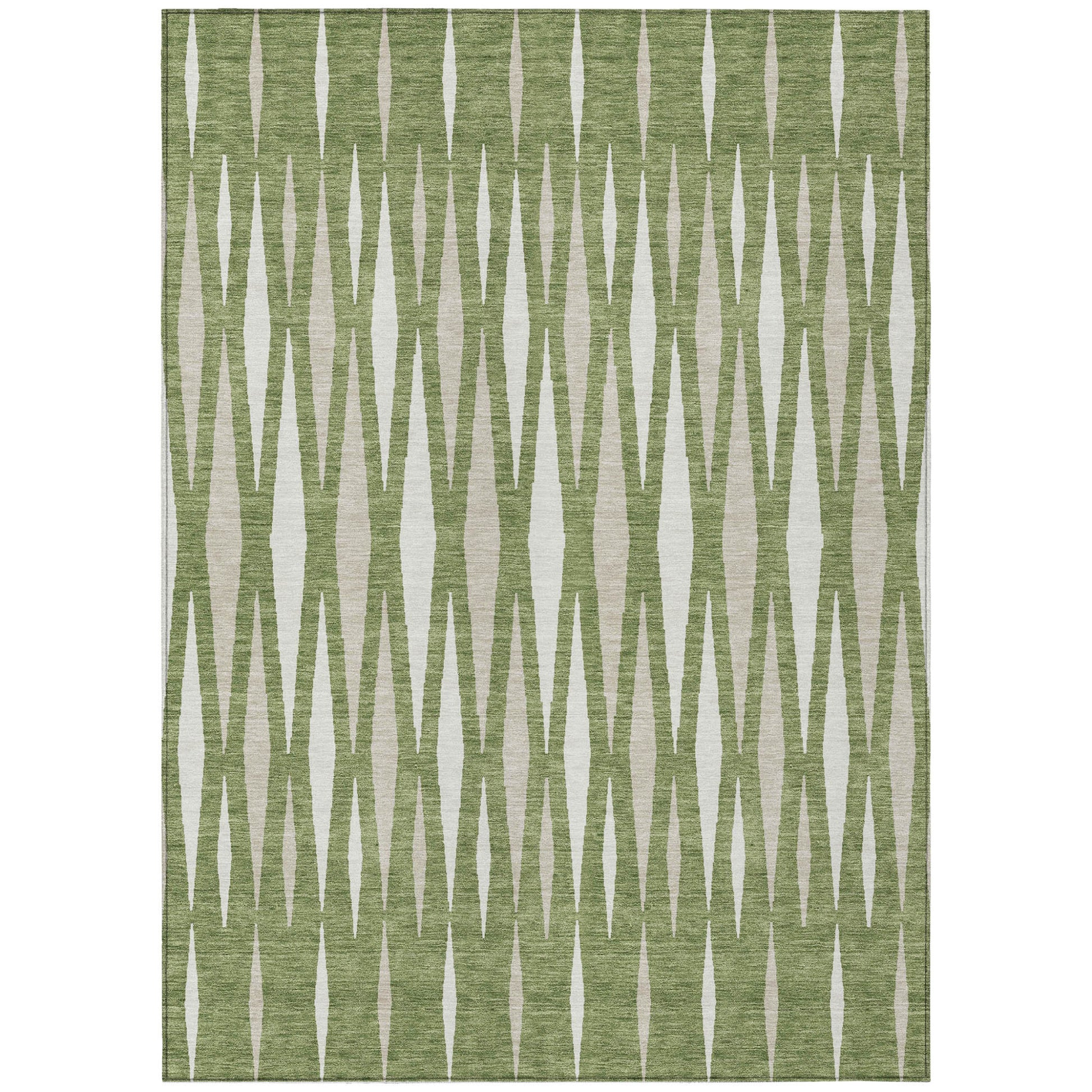 Tabselect Home Line 5' X 8' Green And Ivory Geometric Washable Indoor Outdoor Area Rug
