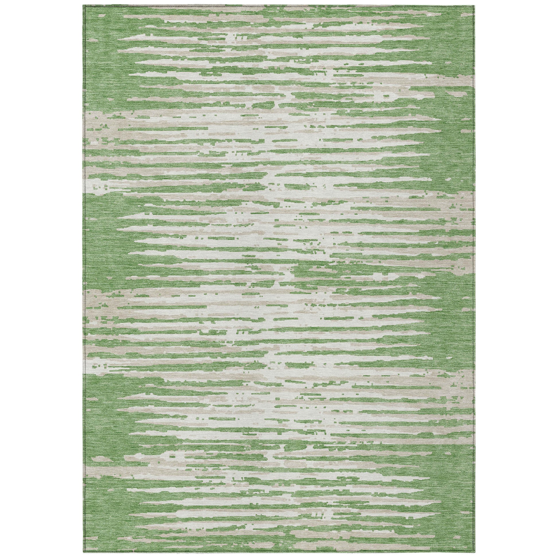 Tabselect Home Line 5' X 8' Green And Ivory Striped Washable Indoor Outdoor Area Rug