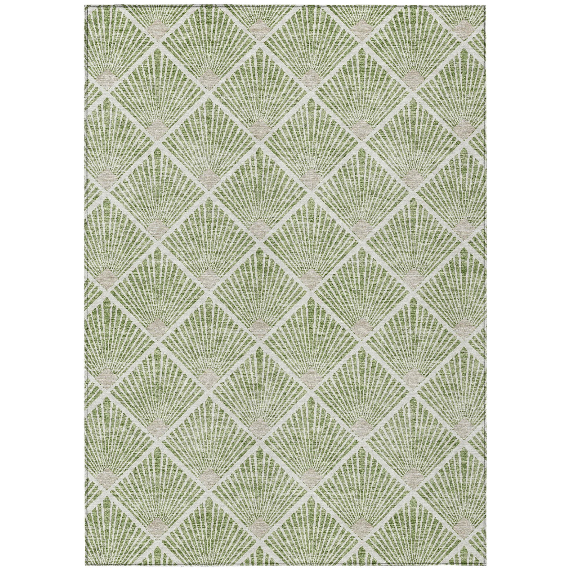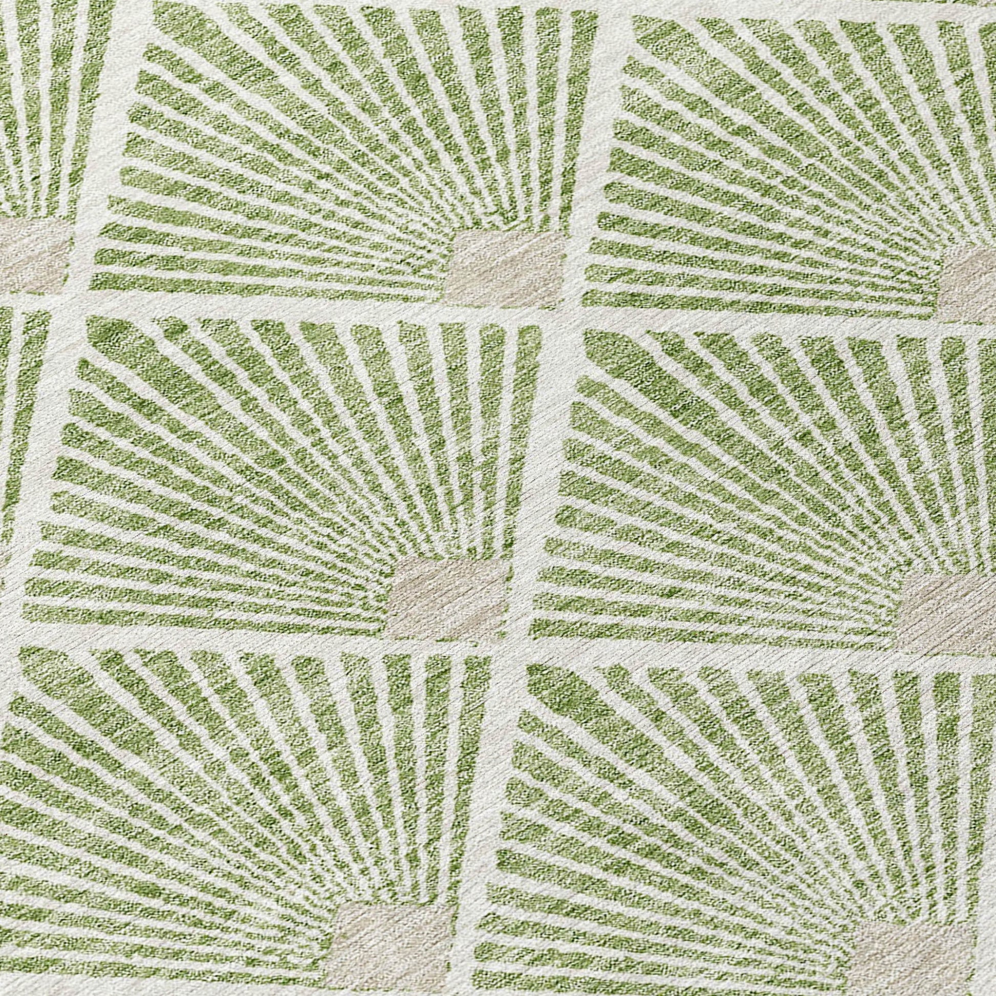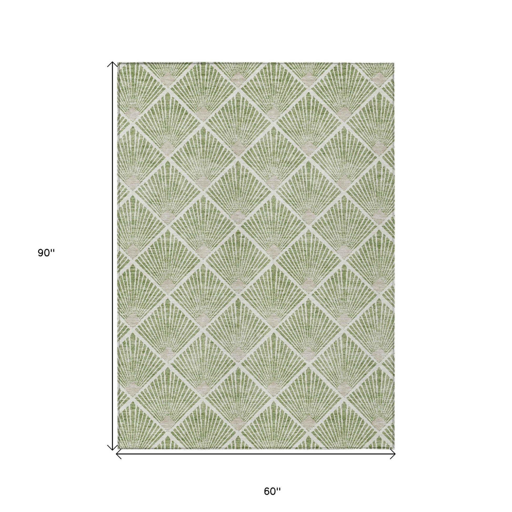 Tabselect Home Line 5' X 8' Green Beige And Ivory Geometric Washable Indoor Outdoor Area Rug