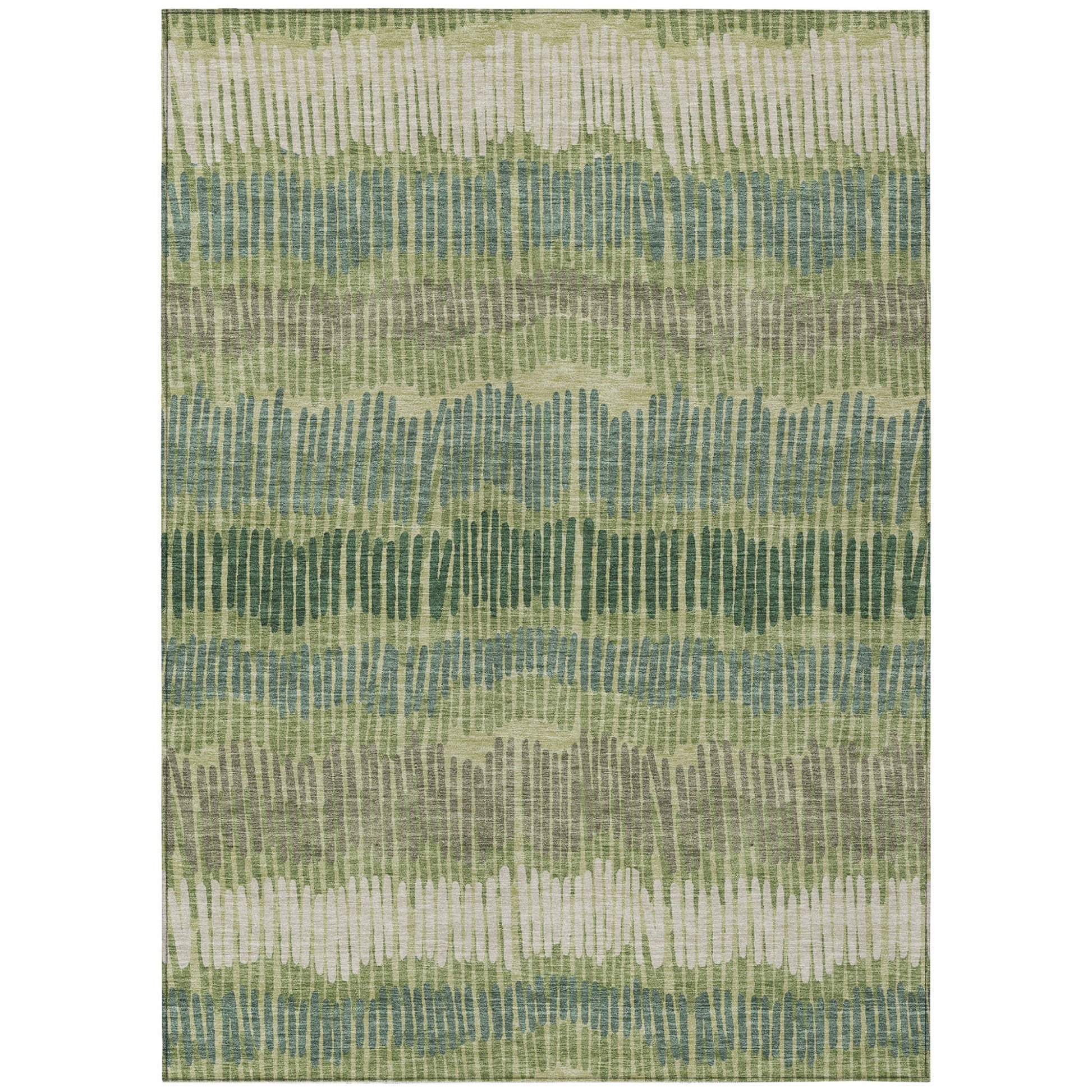 Tabselect Home Line 5' X 8' Green Gray And Ivory Striped Washable Indoor Outdoor Area Rug