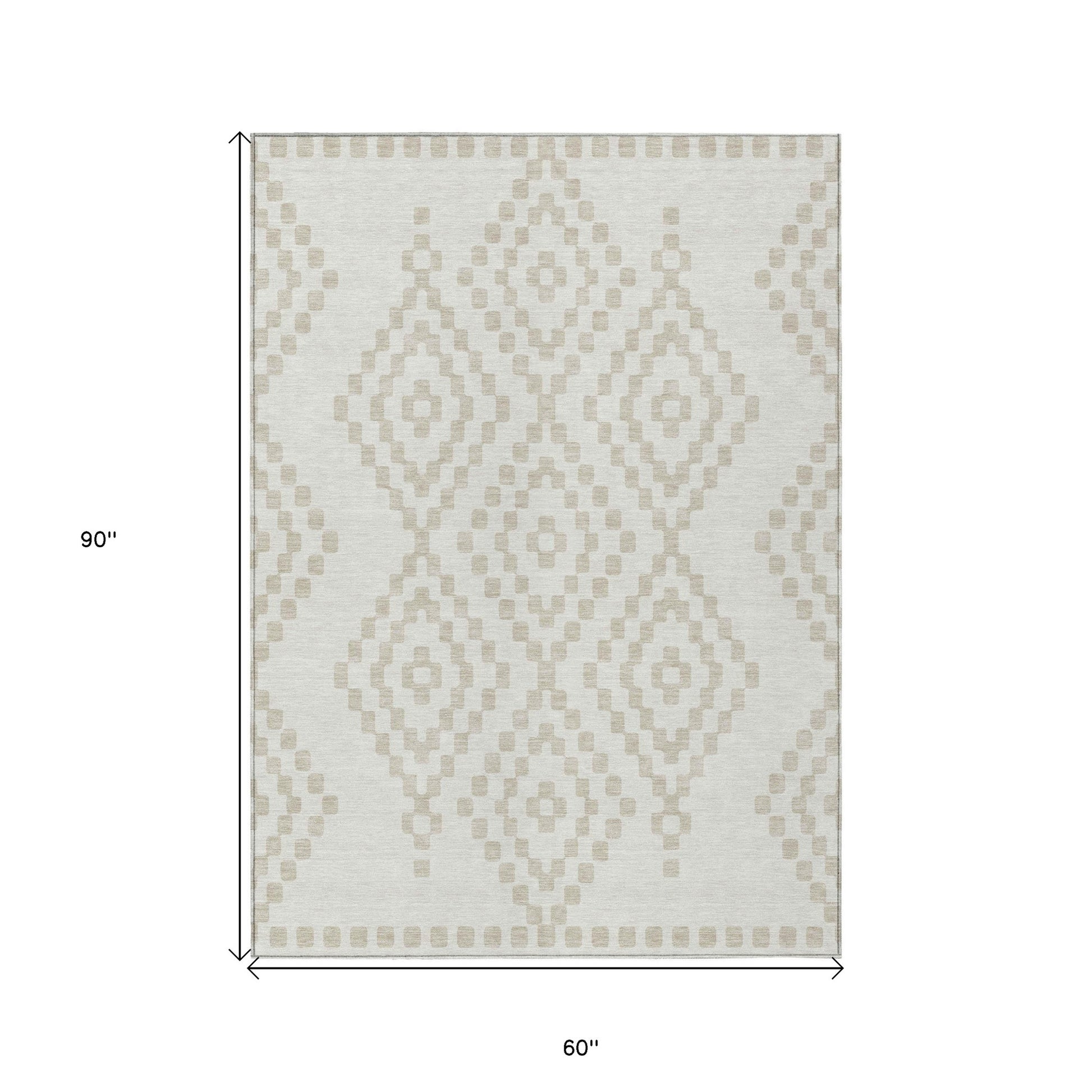 Tabselect Home Line 5' X 8' Ivory And Beige Geometric Washable Indoor Outdoor Area Rug
