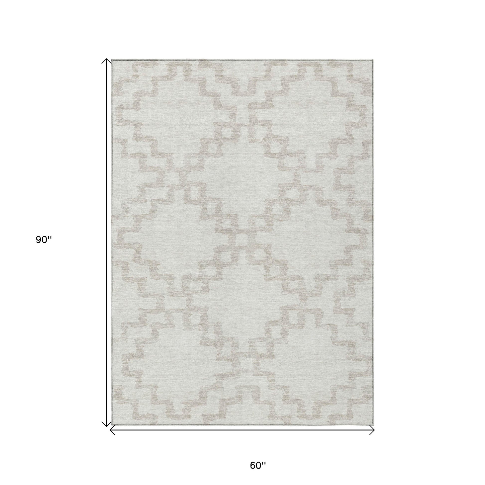 Tabselect Home Line 5' X 8' Ivory And Beige Geometric Washable Indoor Outdoor Area Rug