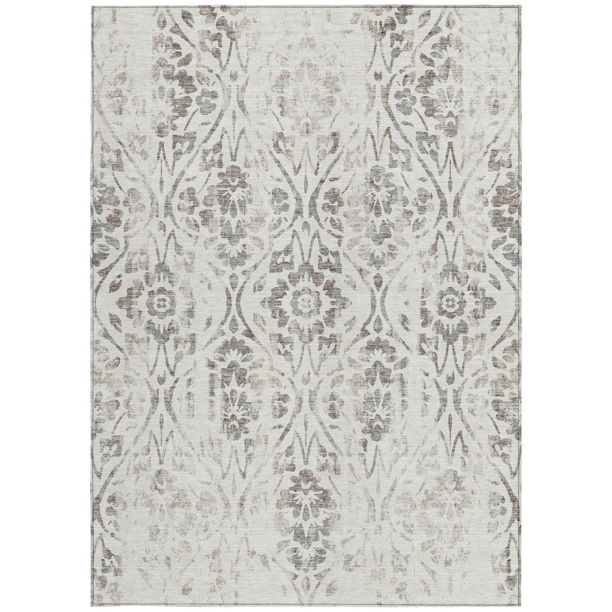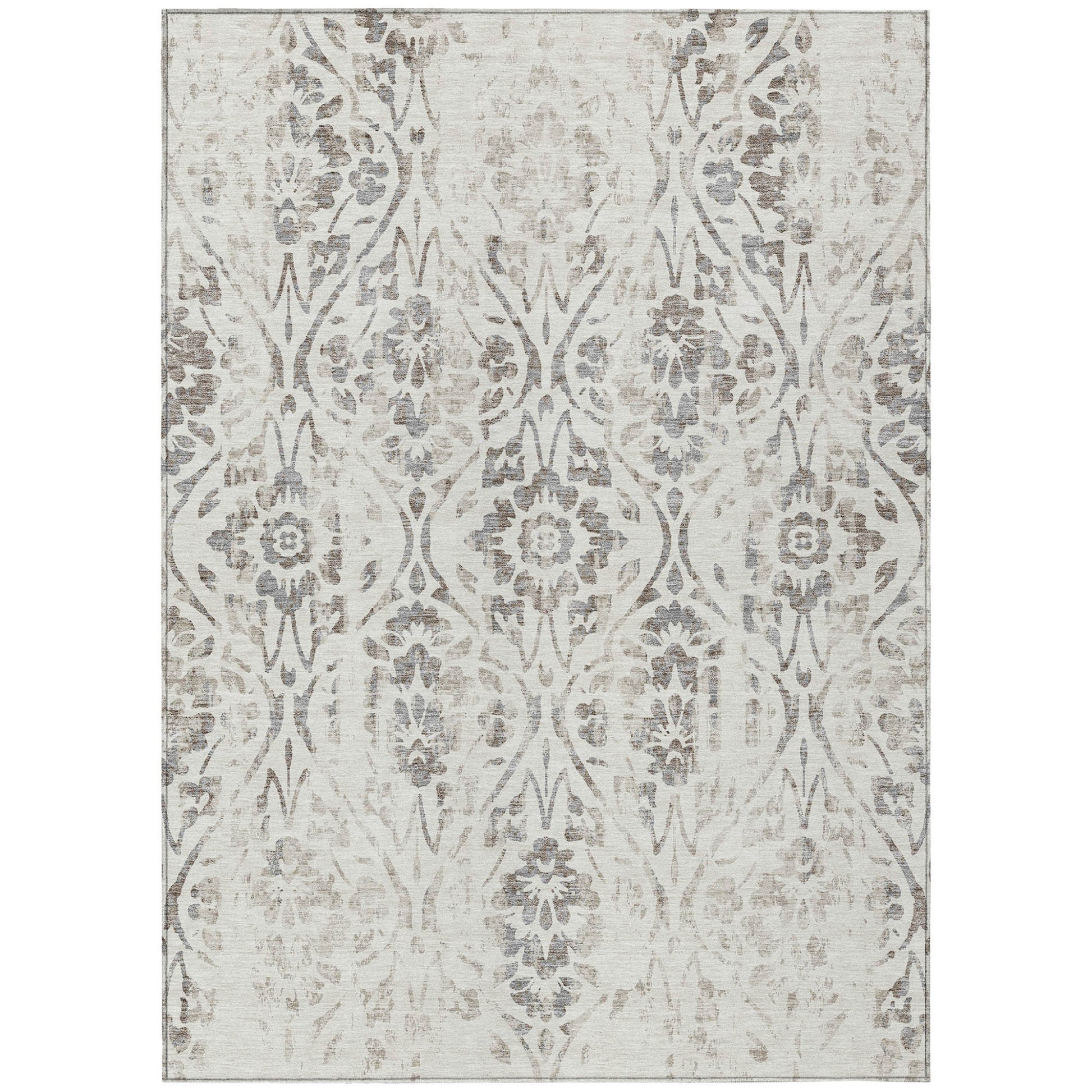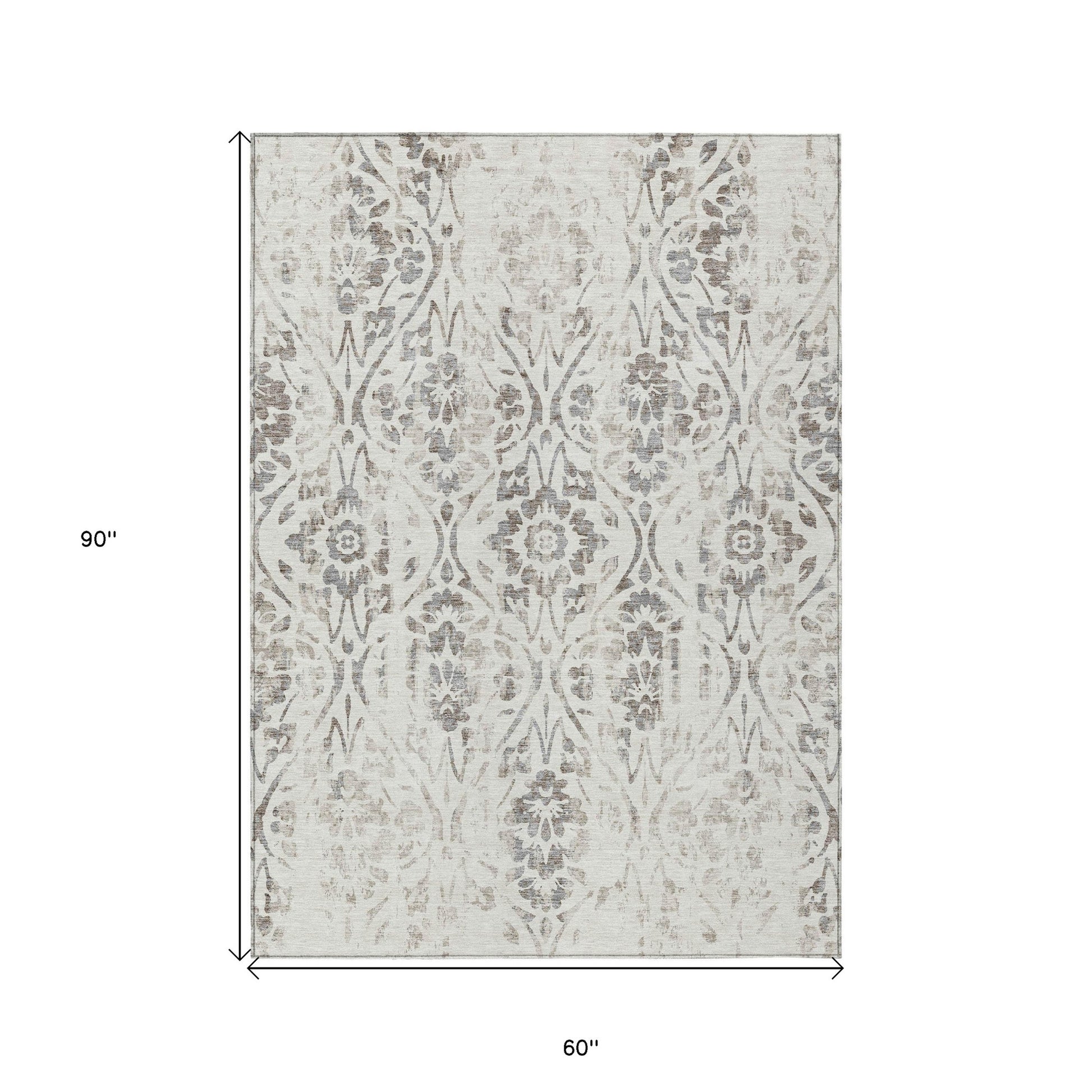 Tabselect Home Line 5' X 8' Ivory And Brown Floral Washable Indoor Outdoor Area Rug