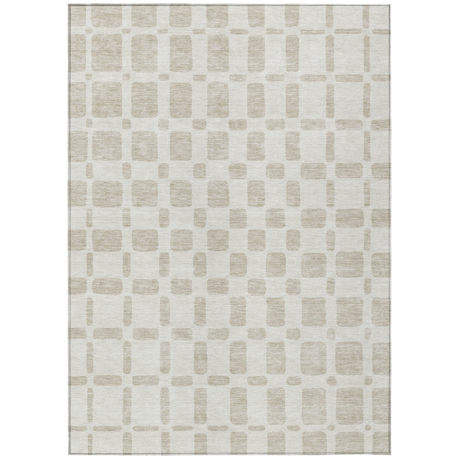 Tabselect Home Line 5' X 8' Ivory And Brown Geometric Washable Indoor Outdoor Area Rug