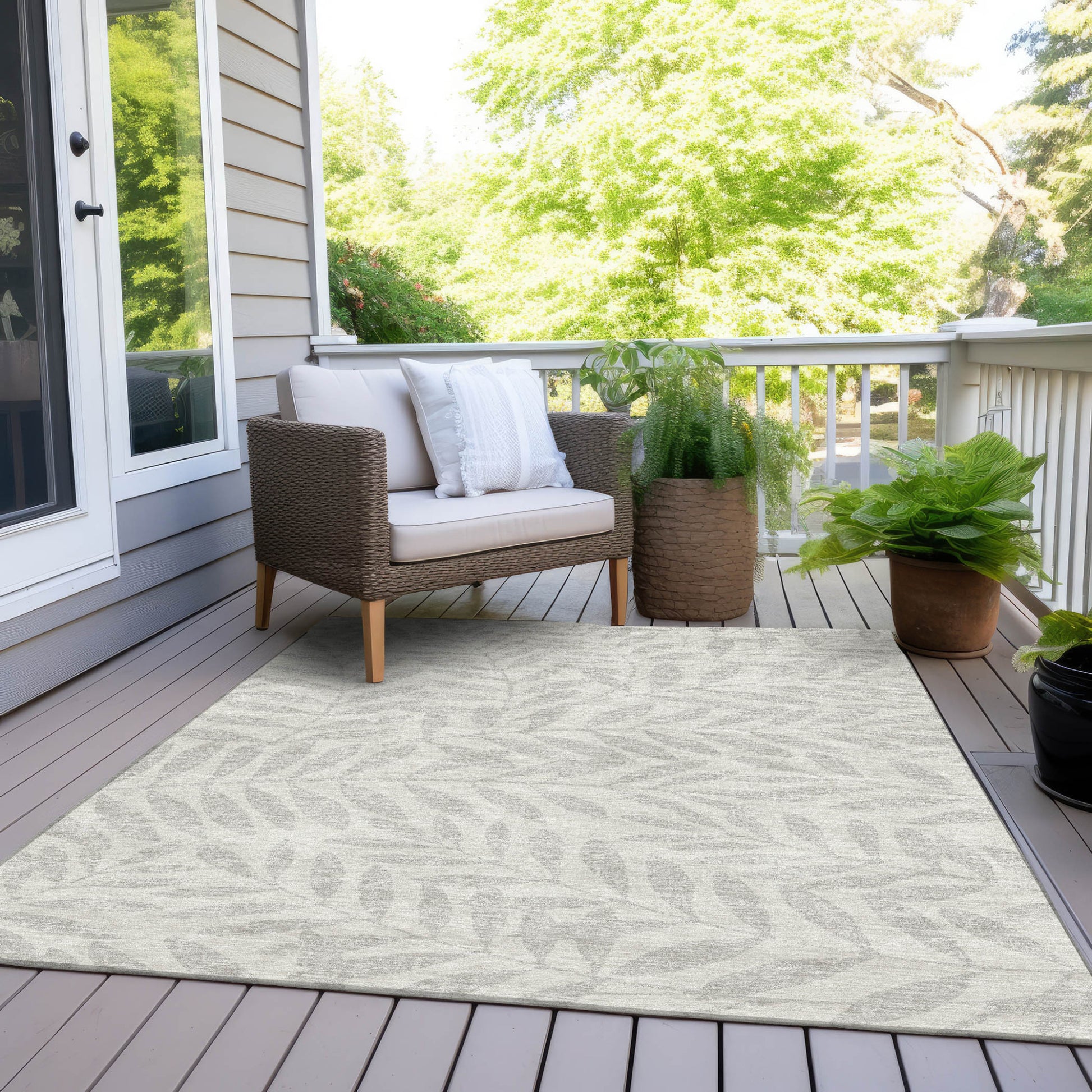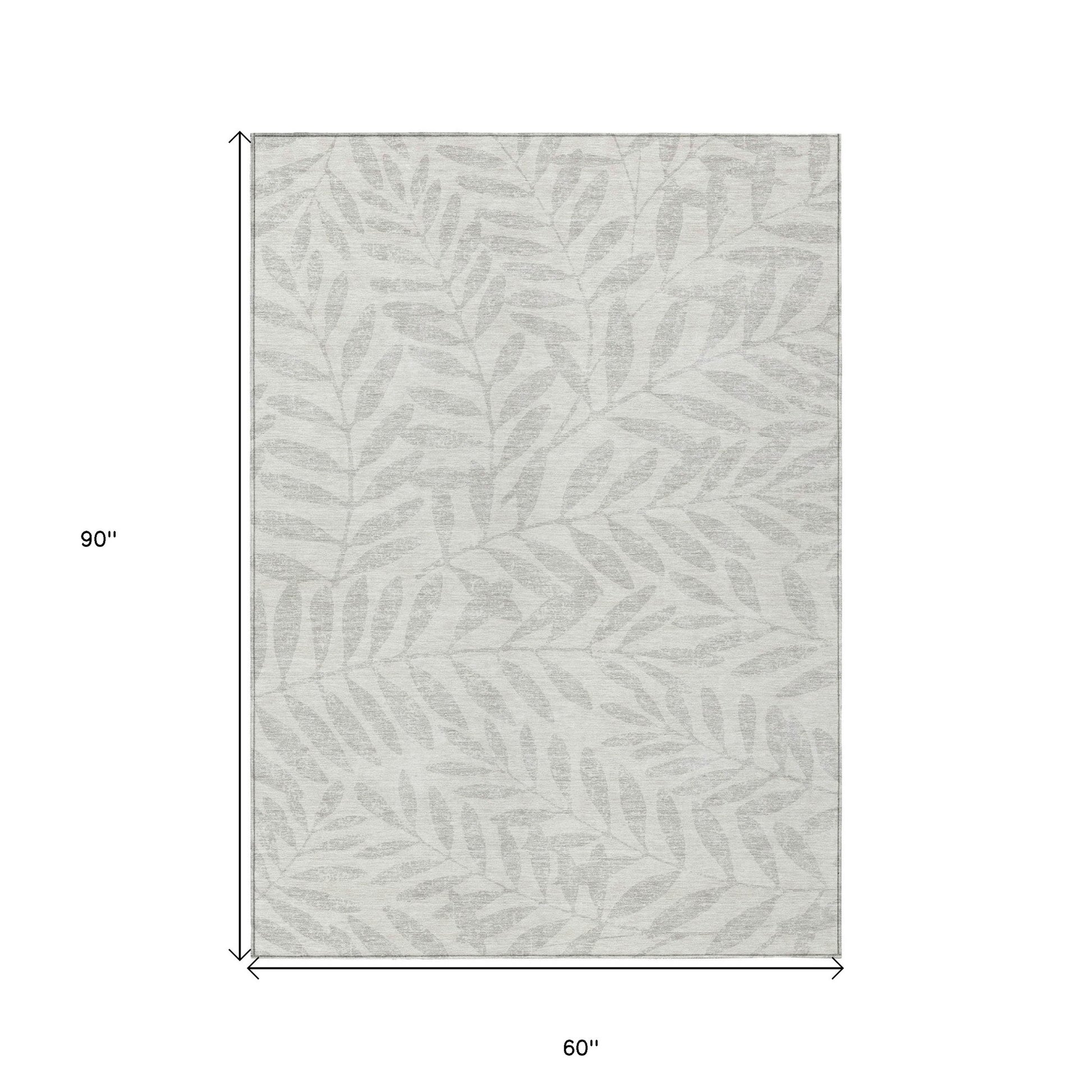 Tabselect Home Line 5' X 8' Ivory And Gray Floral Washable Indoor Outdoor Area Rug