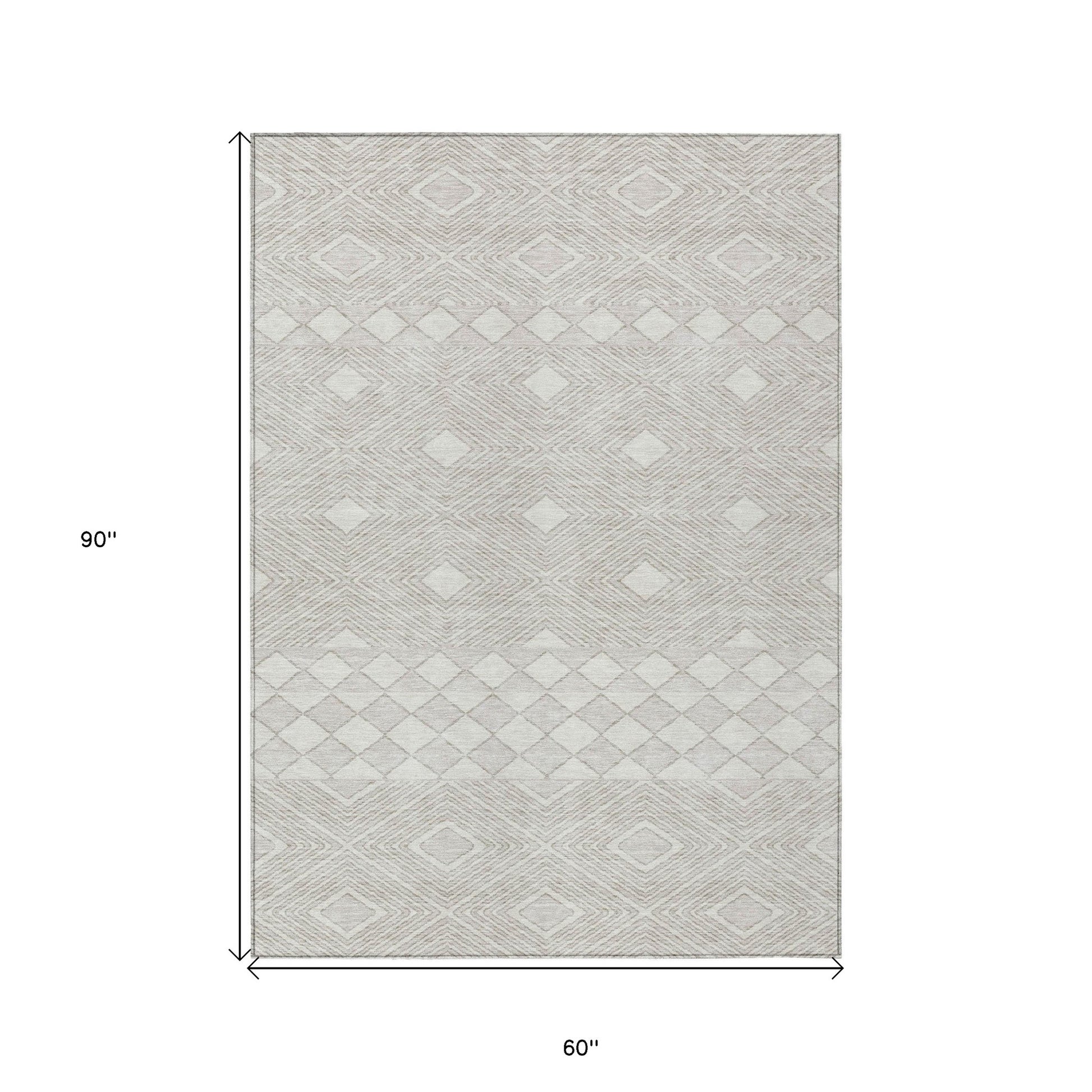 Tabselect Home Line 5' X 8' Ivory And Gray Geometric Washable Indoor Outdoor Area Rug