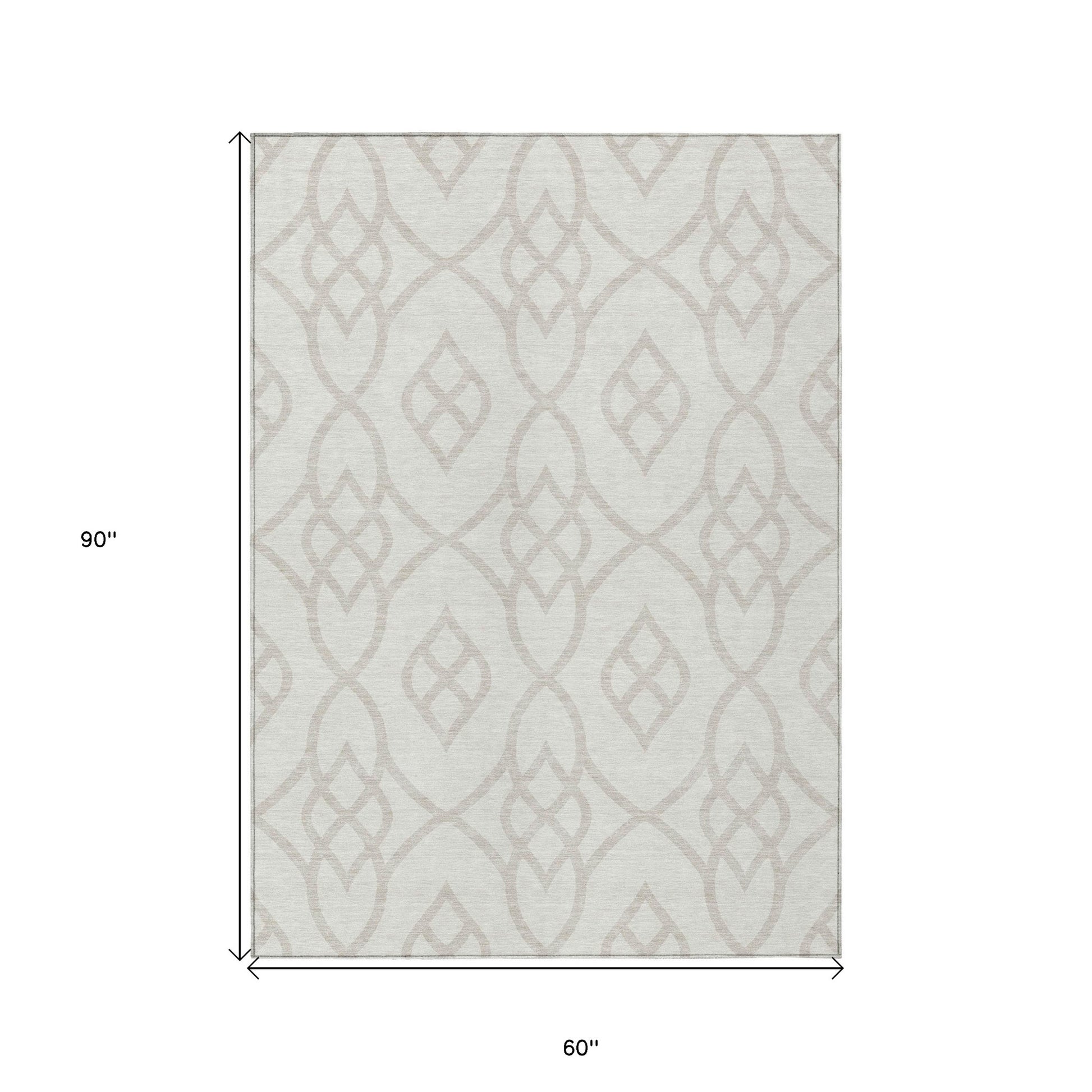 Tabselect Home Line 5' X 8' Ivory And Gray Trellis Washable Indoor Outdoor Area Rug