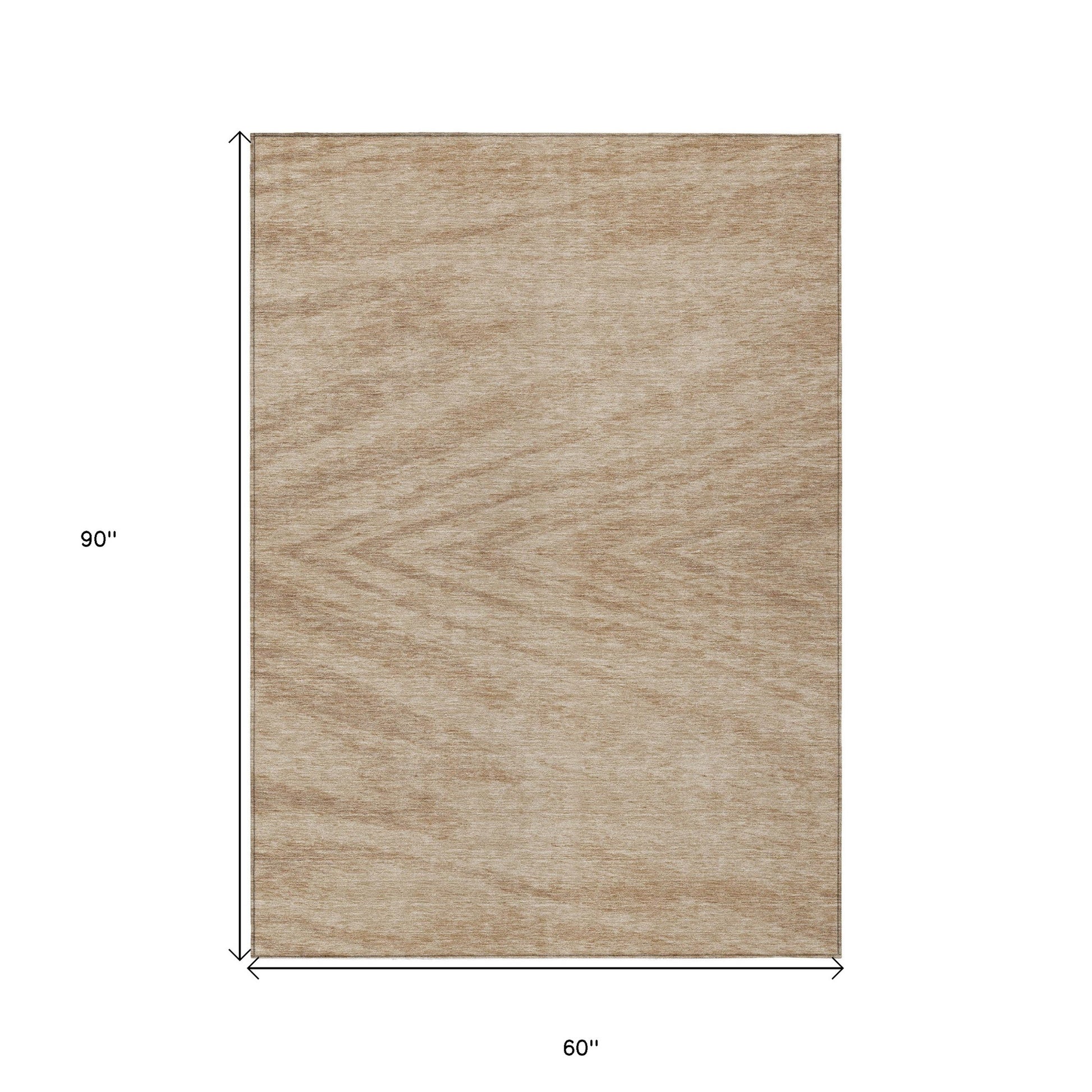 Tabselect Home Line 5' X 8' Khaki And Brown Abstract Washable Indoor Outdoor Area Rug