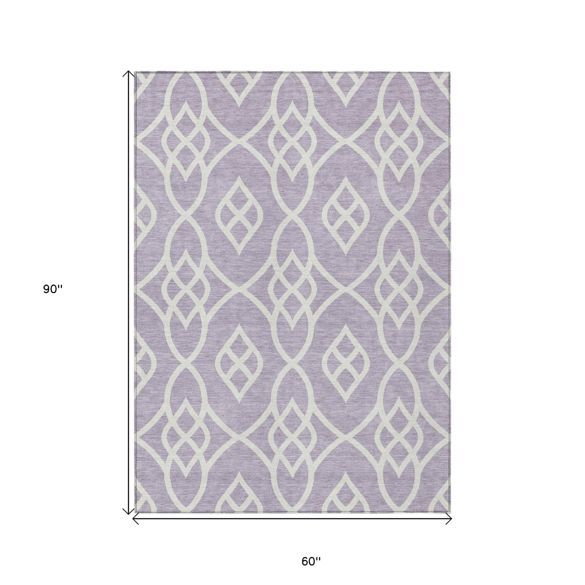 Tabselect Home Line 5' X 8' Lavender And Ivory Trellis Washable Indoor Outdoor Area Rug