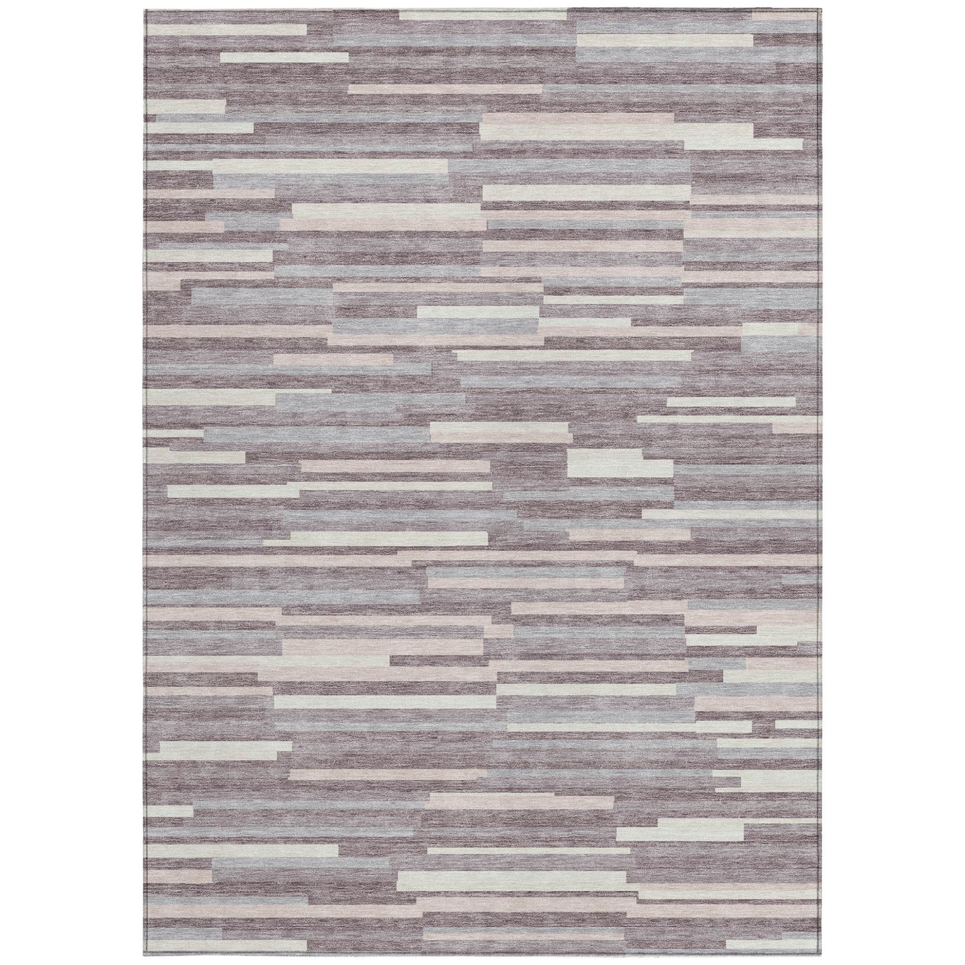 Tabselect Home Line 5' X 8' Lavender Gray And Ivory Striped Washable Indoor Outdoor Area Rug