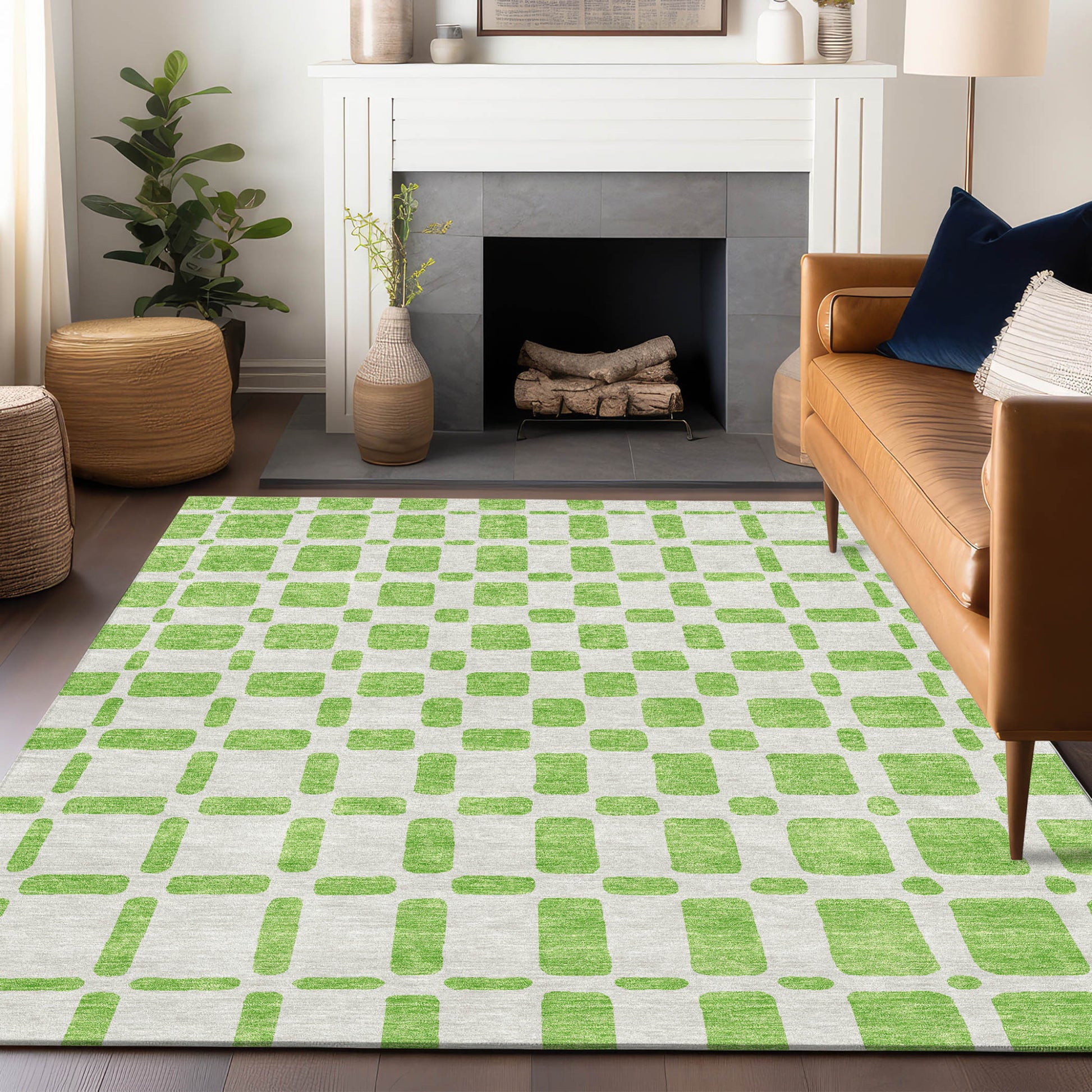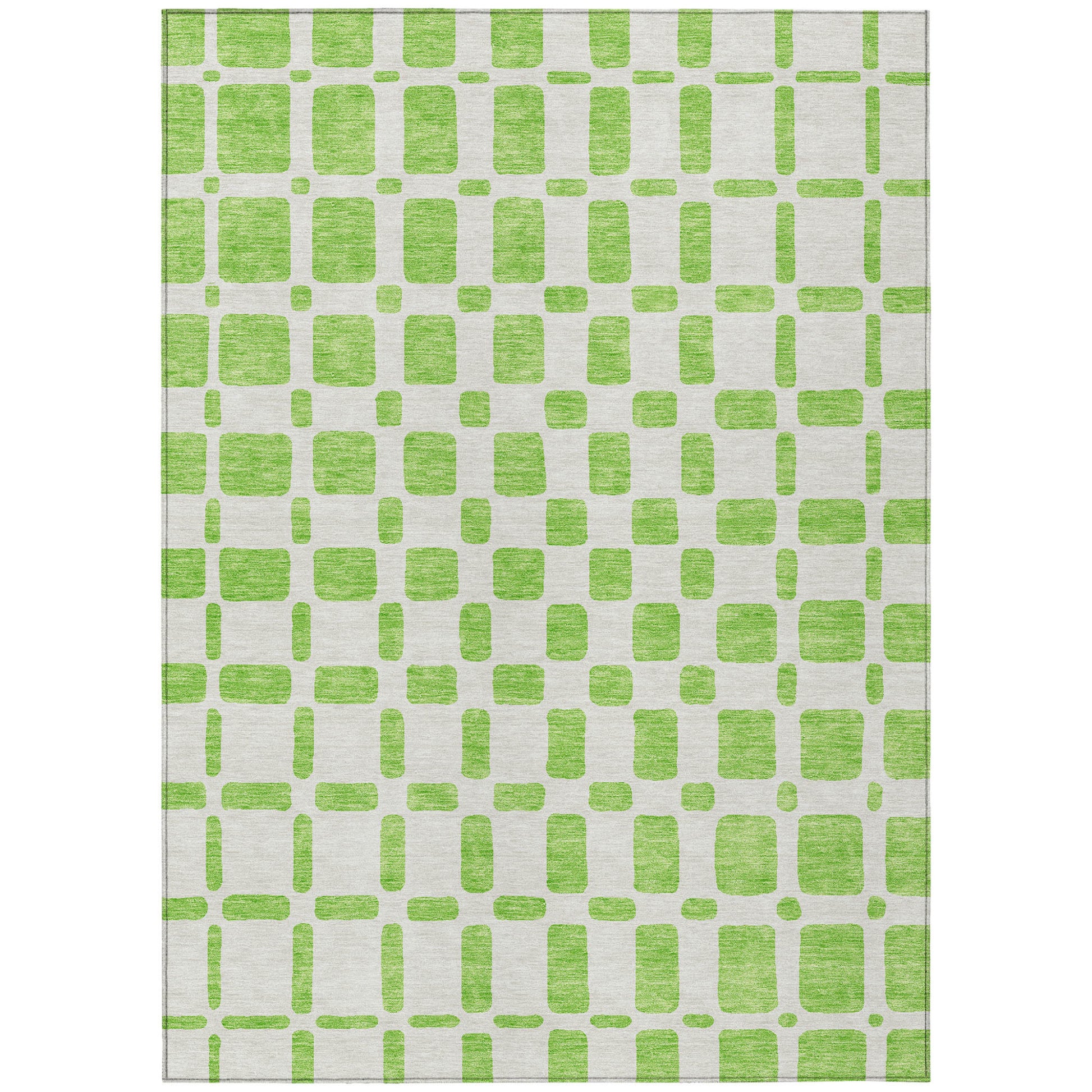 Tabselect Home Line 5' X 8' Lime Green And Ivory Geometric Washable Indoor Outdoor Area Rug