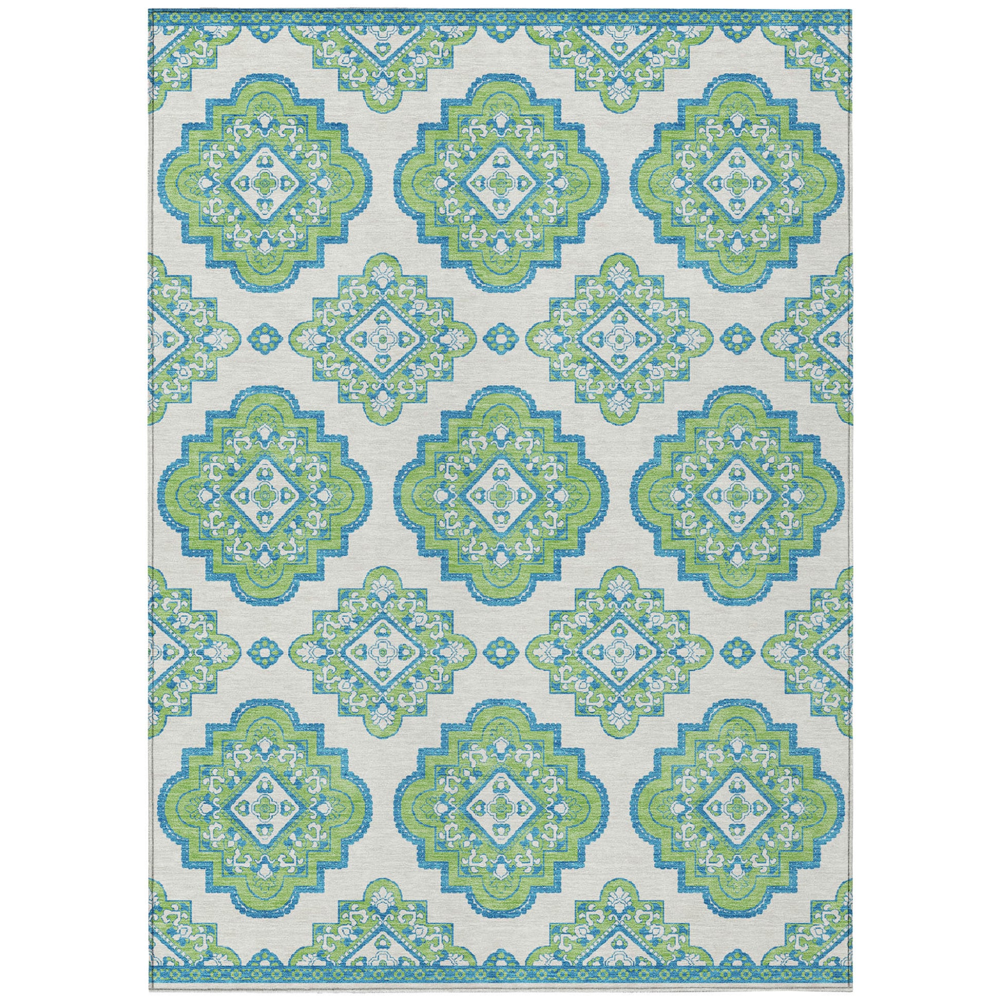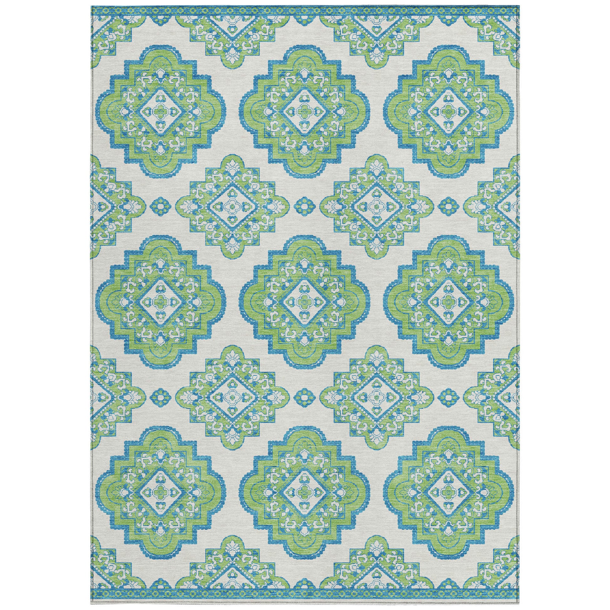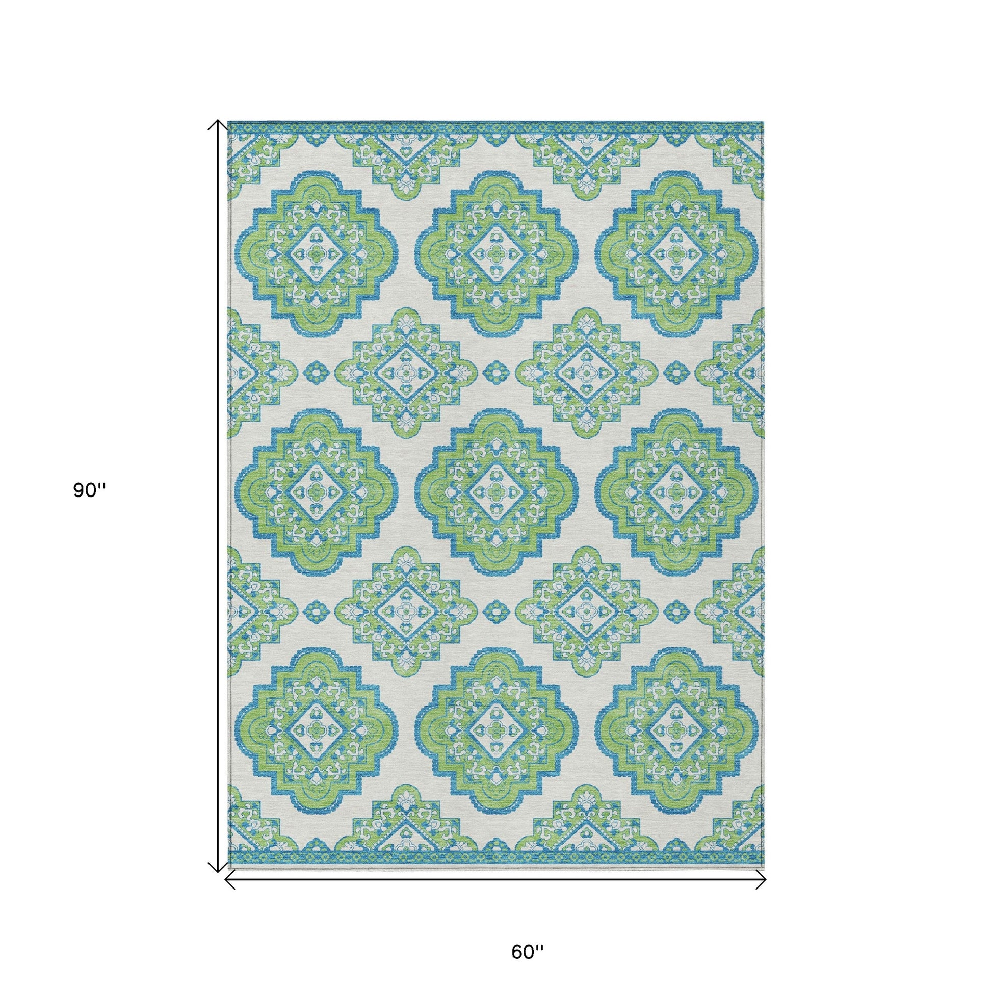 Tabselect Home Line 5' X 8' Lime Green And Ivory Medallion Washable Indoor Outdoor Area Rug
