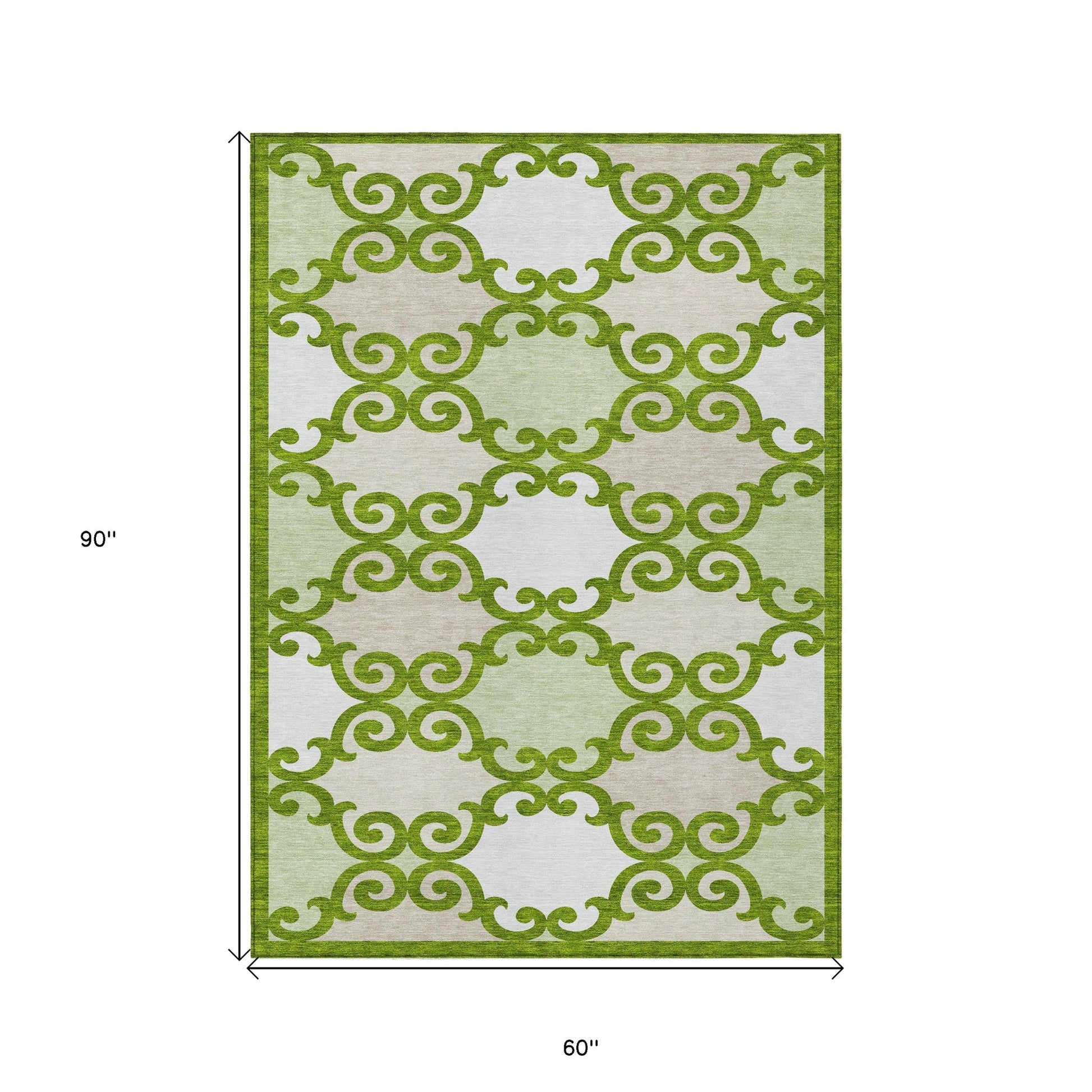 Tabselect Home Line 5' X 8' Lime Green And Ivory Trellis Washable Indoor Outdoor Area Rug
