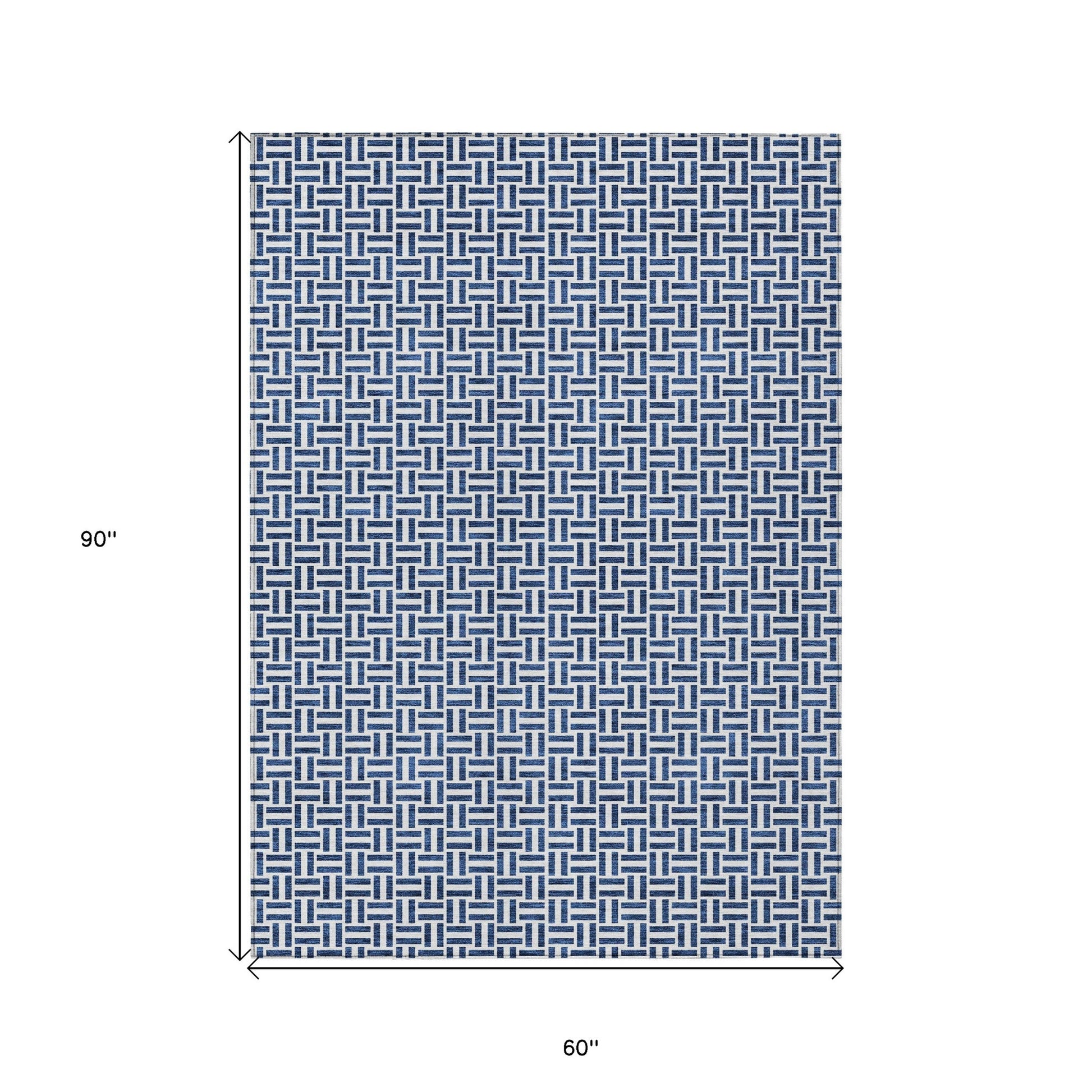 Tabselect Home Line 5' X 8' Navy Blue And Gray Geometric Washable Indoor Outdoor Area Rug