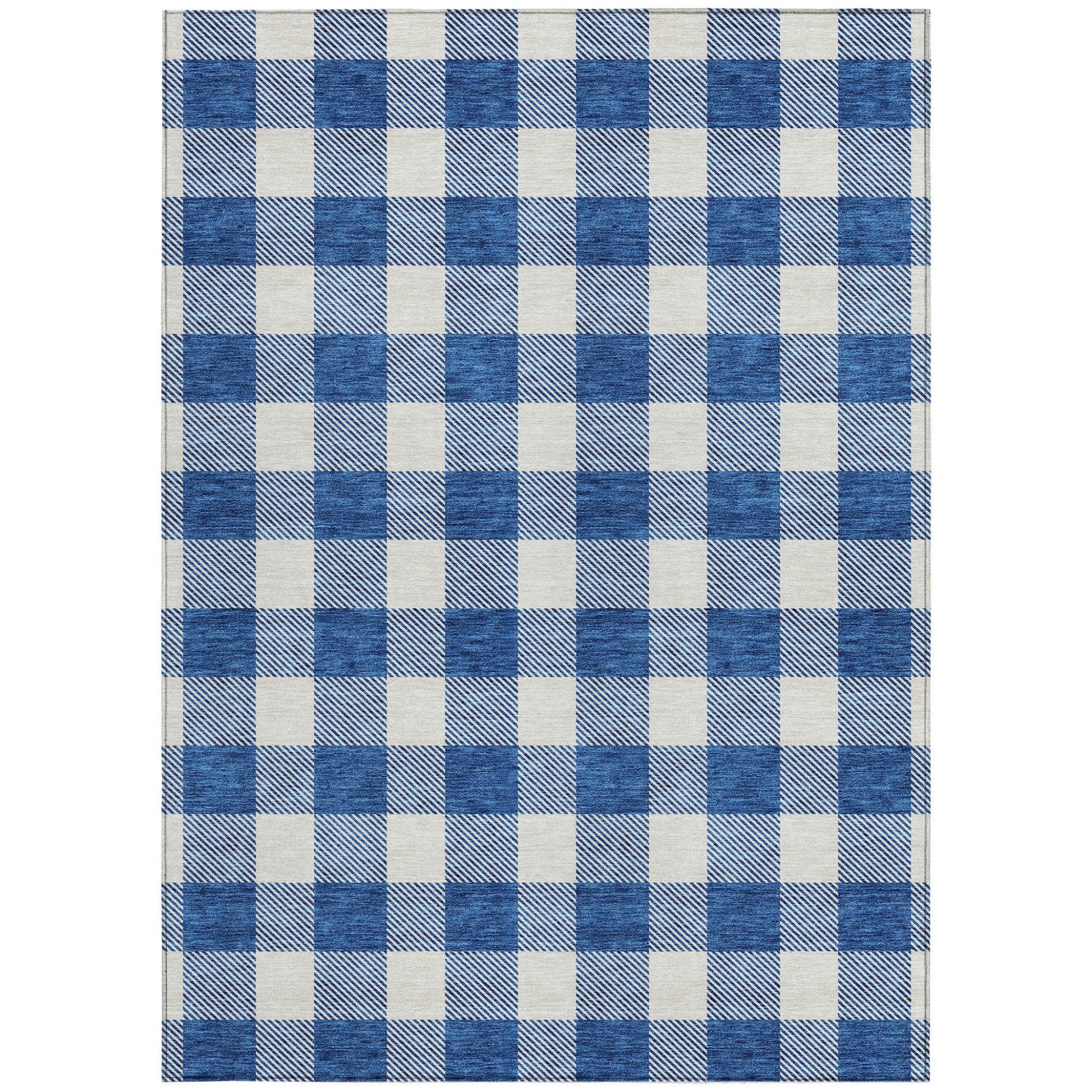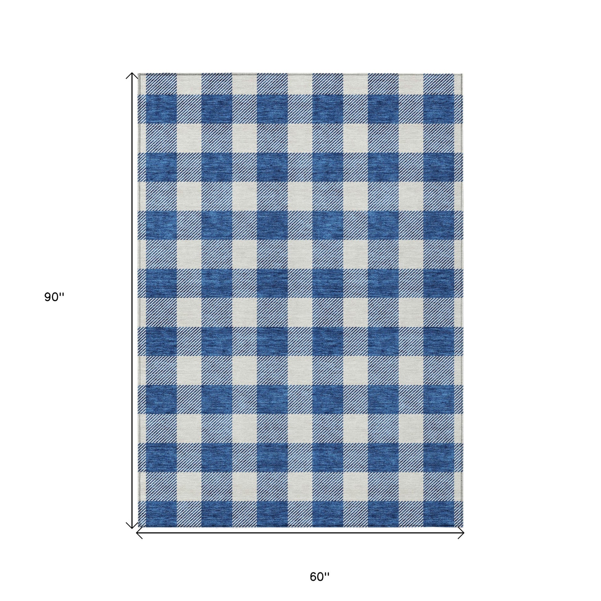 Tabselect Home Line 5' X 8' Navy Blue And Gray Plaid Washable Indoor Outdoor Area Rug