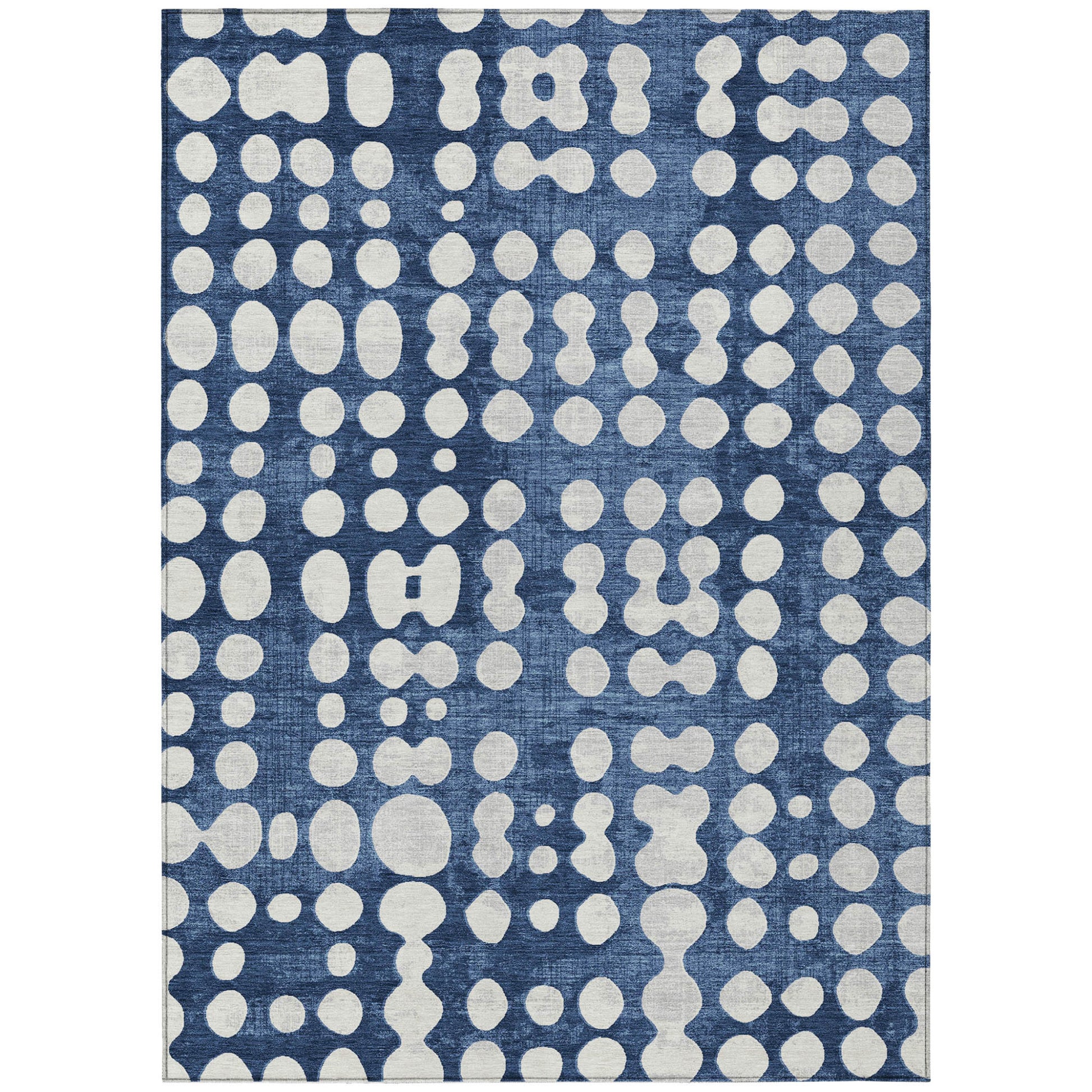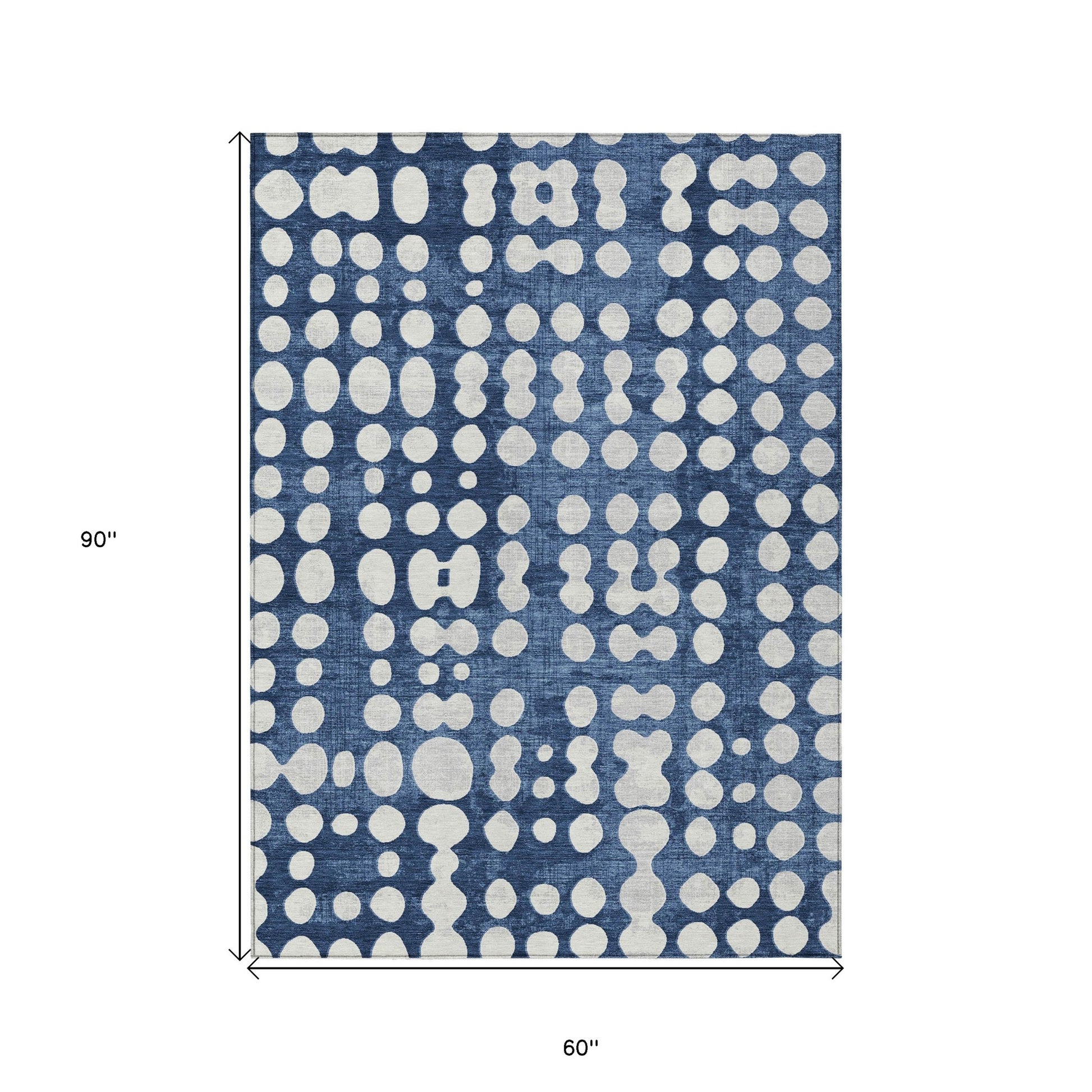 Tabselect Home Line 5' X 8' Navy Blue And Ivory Abstract Washable Indoor Outdoor Area Rug