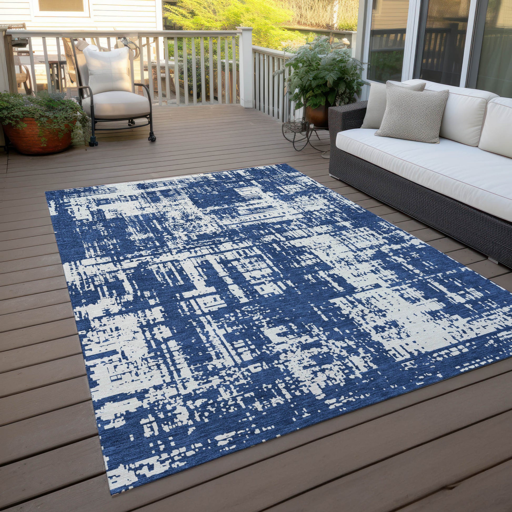 Tabselect Home Line 5' X 8' Navy Blue And Ivory Abstract Washable Indoor Outdoor Area Rug