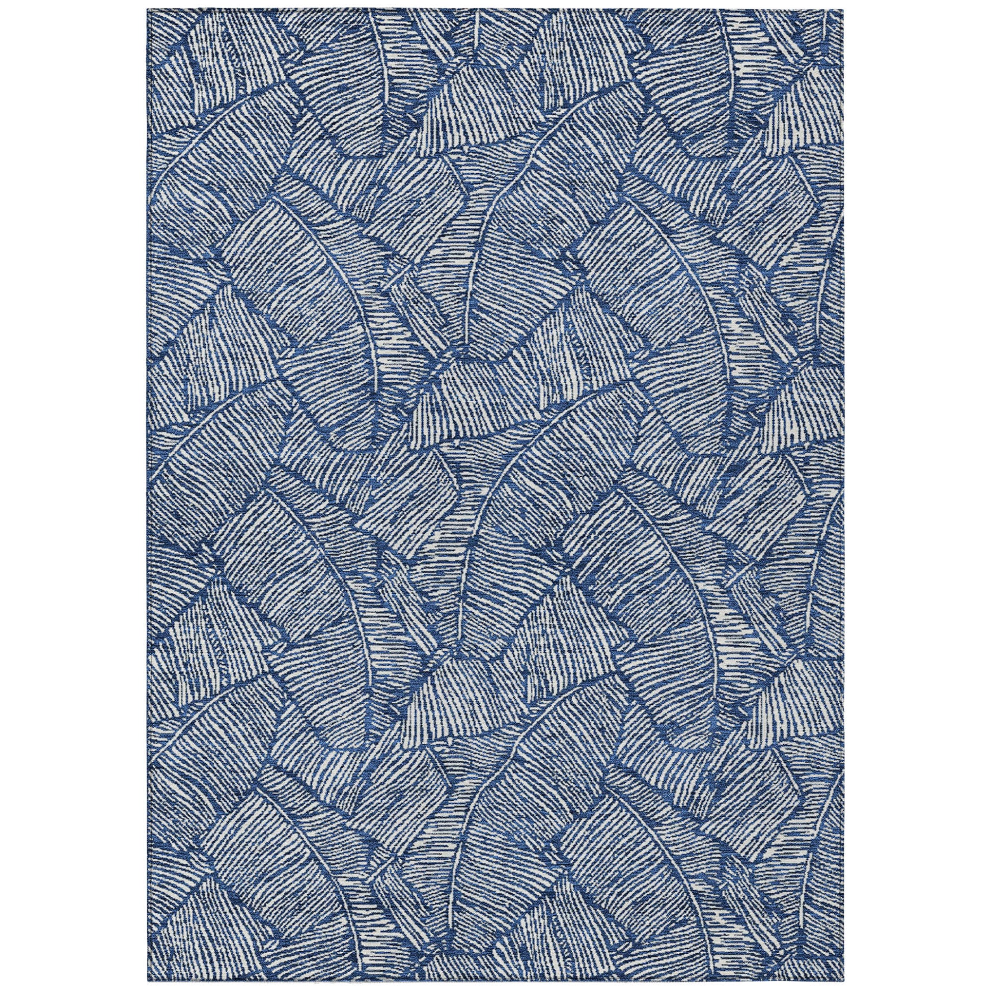 Tabselect Home Line 5' X 8' Navy Blue And Ivory Floral Washable Indoor Outdoor Area Rug