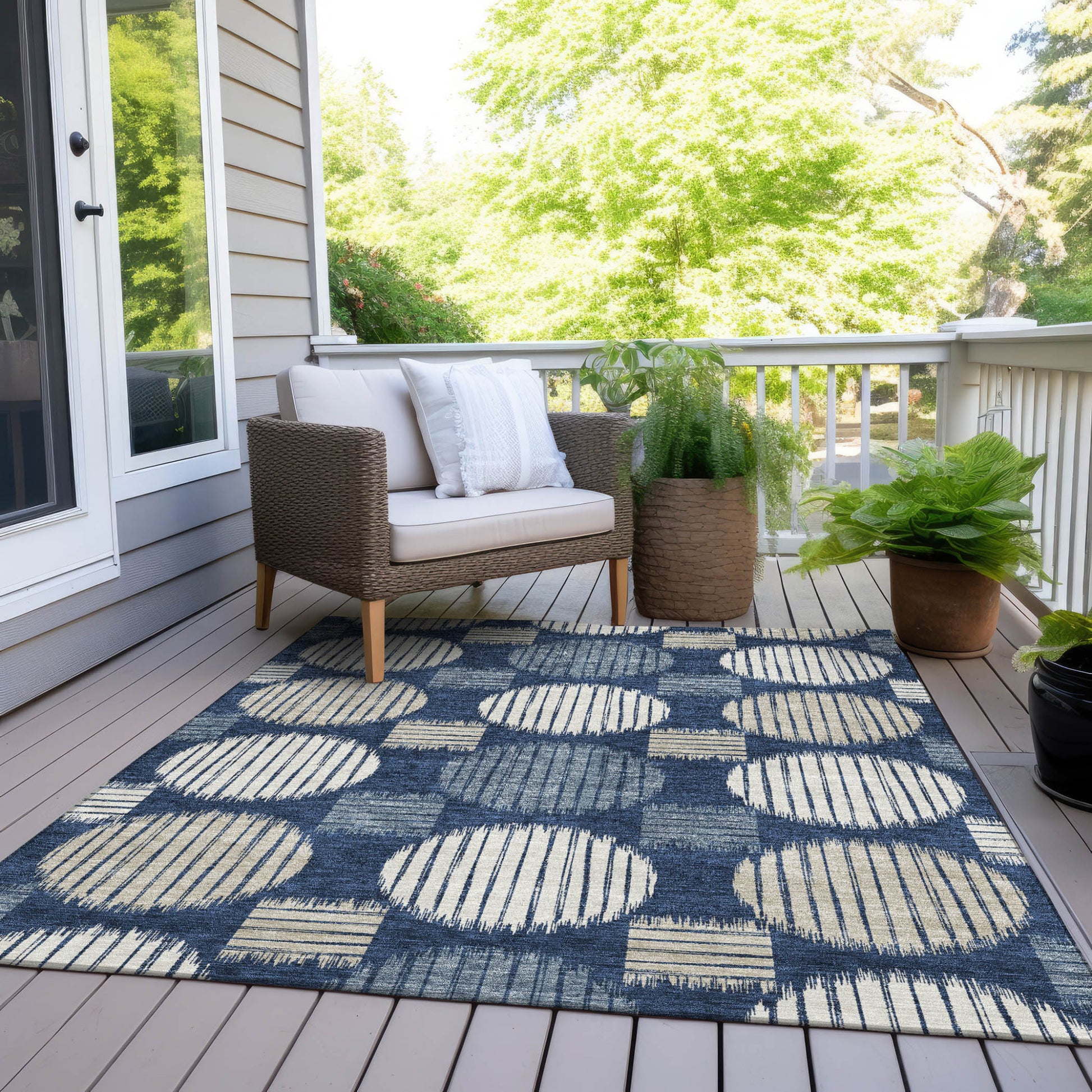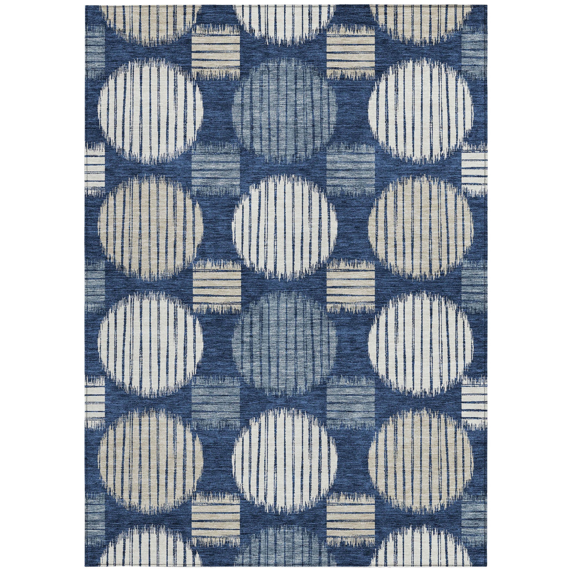 Tabselect Home Line 5' X 8' Navy Blue And Ivory Geometric Washable Indoor Outdoor Area Rug