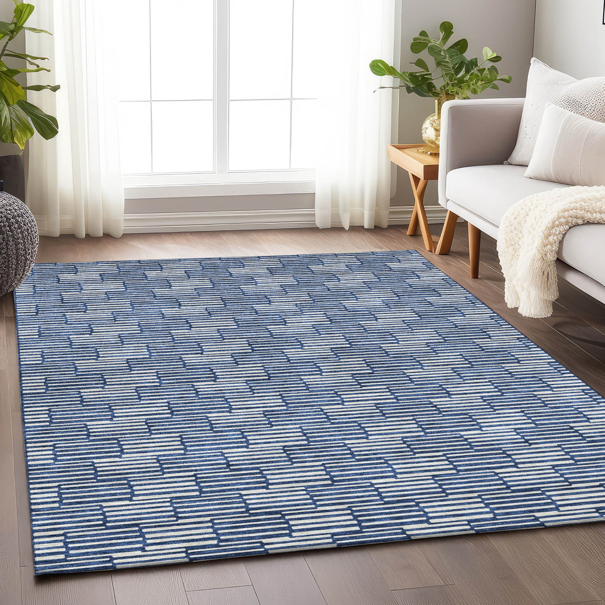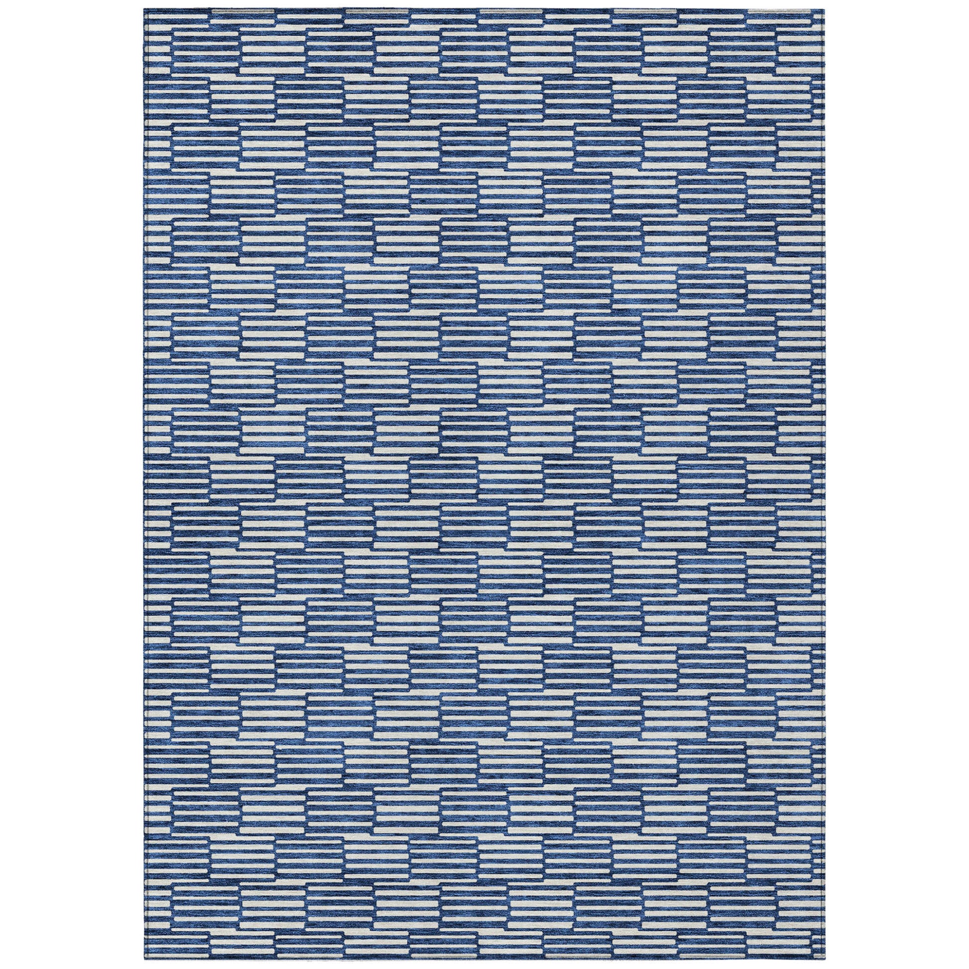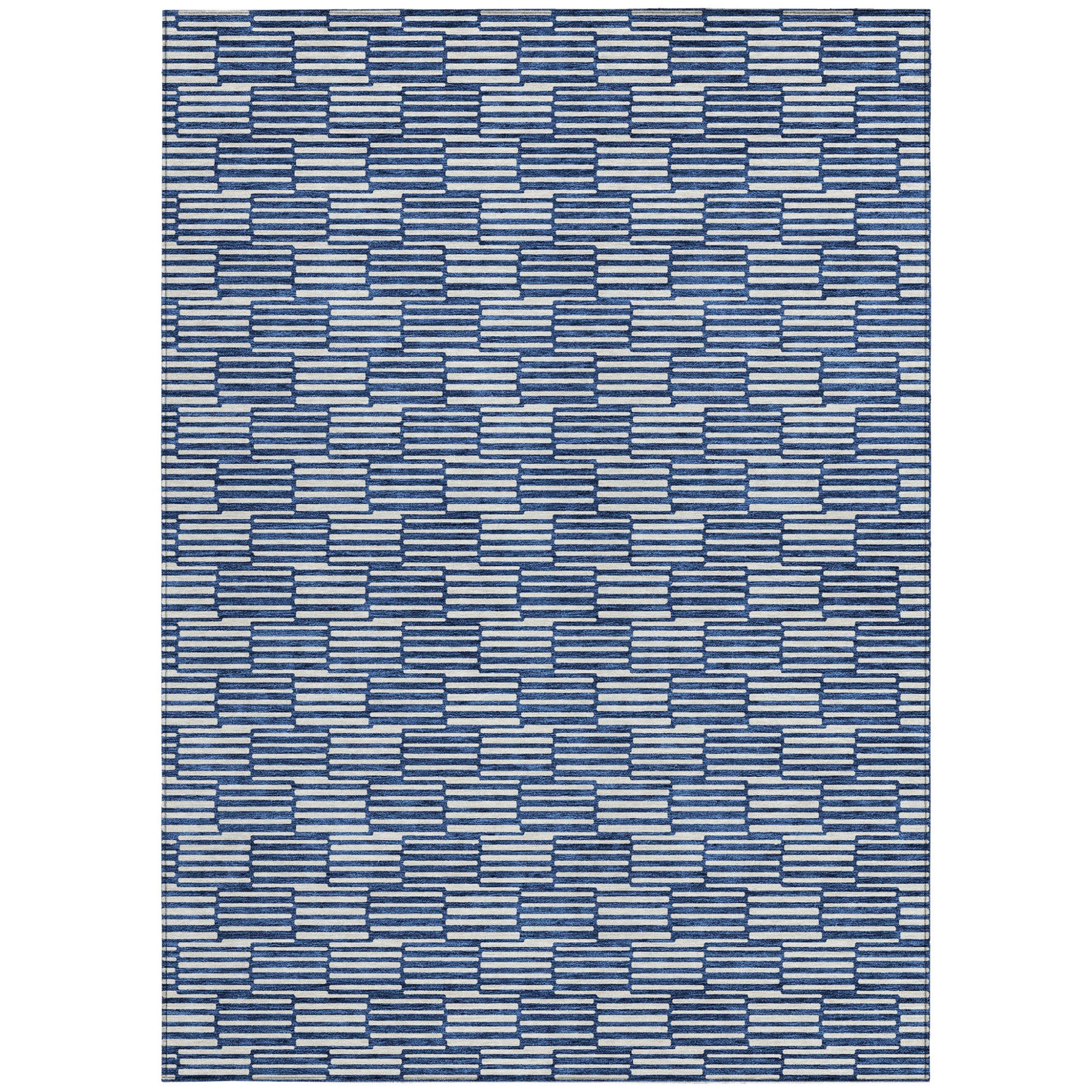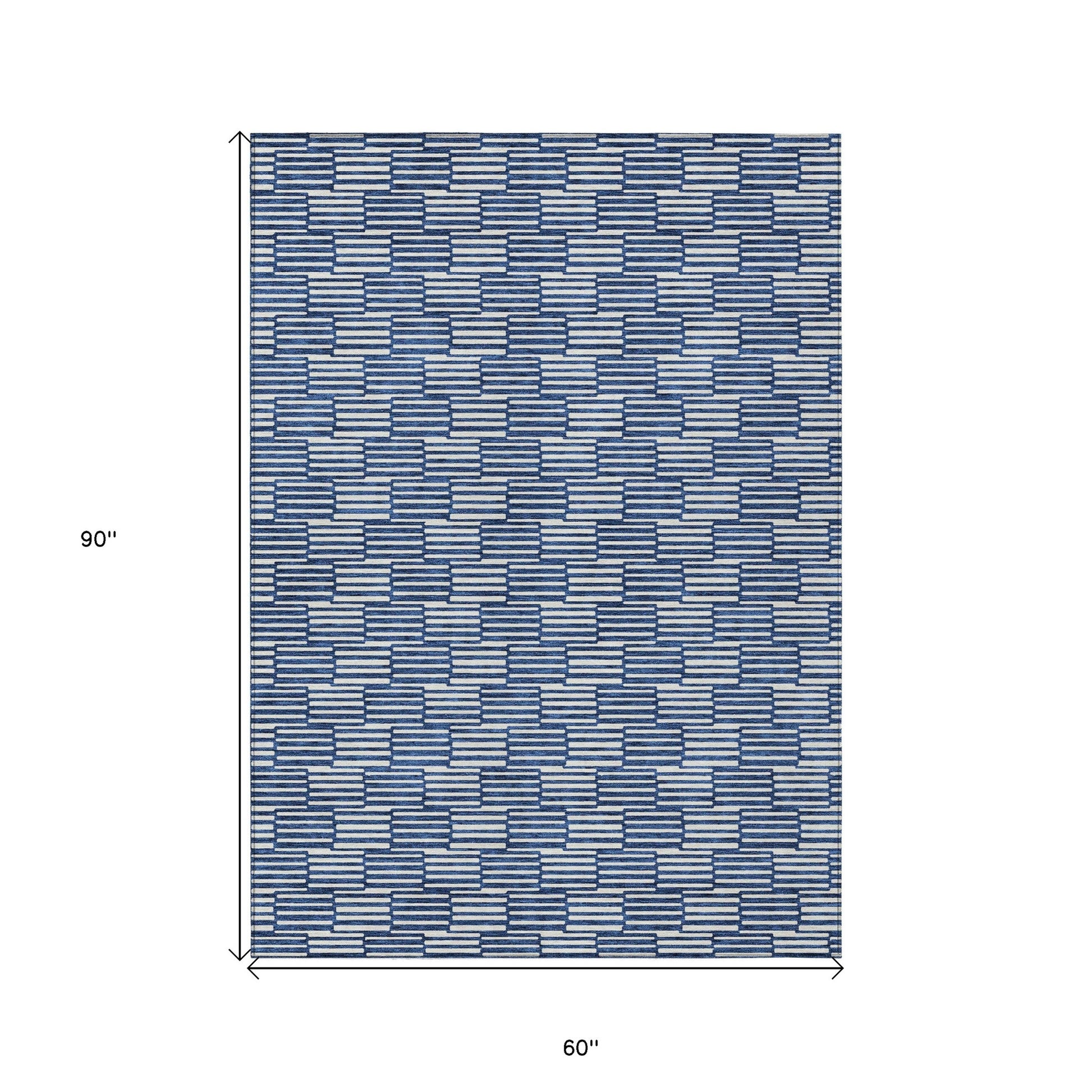 Tabselect Home Line 5' X 8' Navy Blue And Ivory Geometric Washable Indoor Outdoor Area Rug