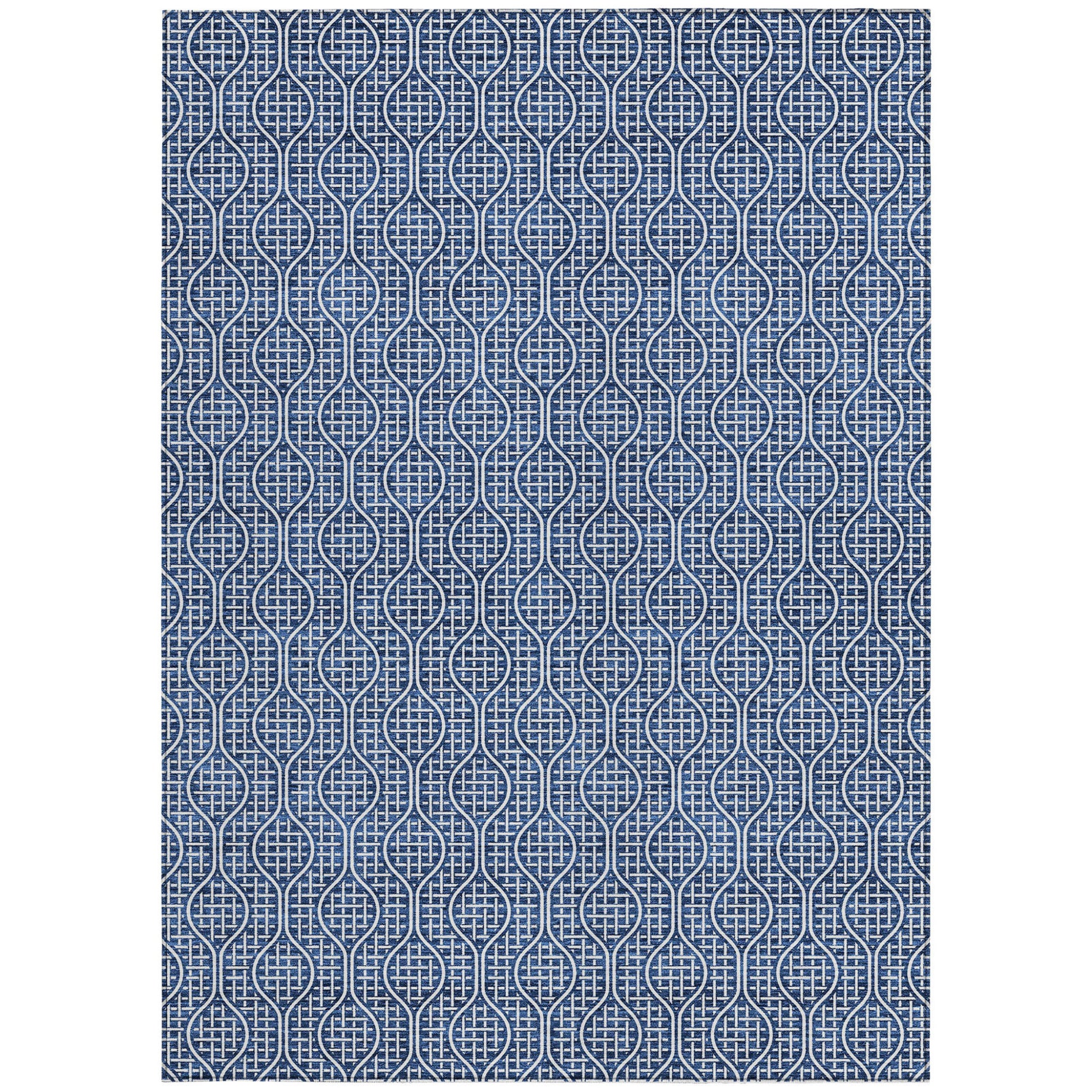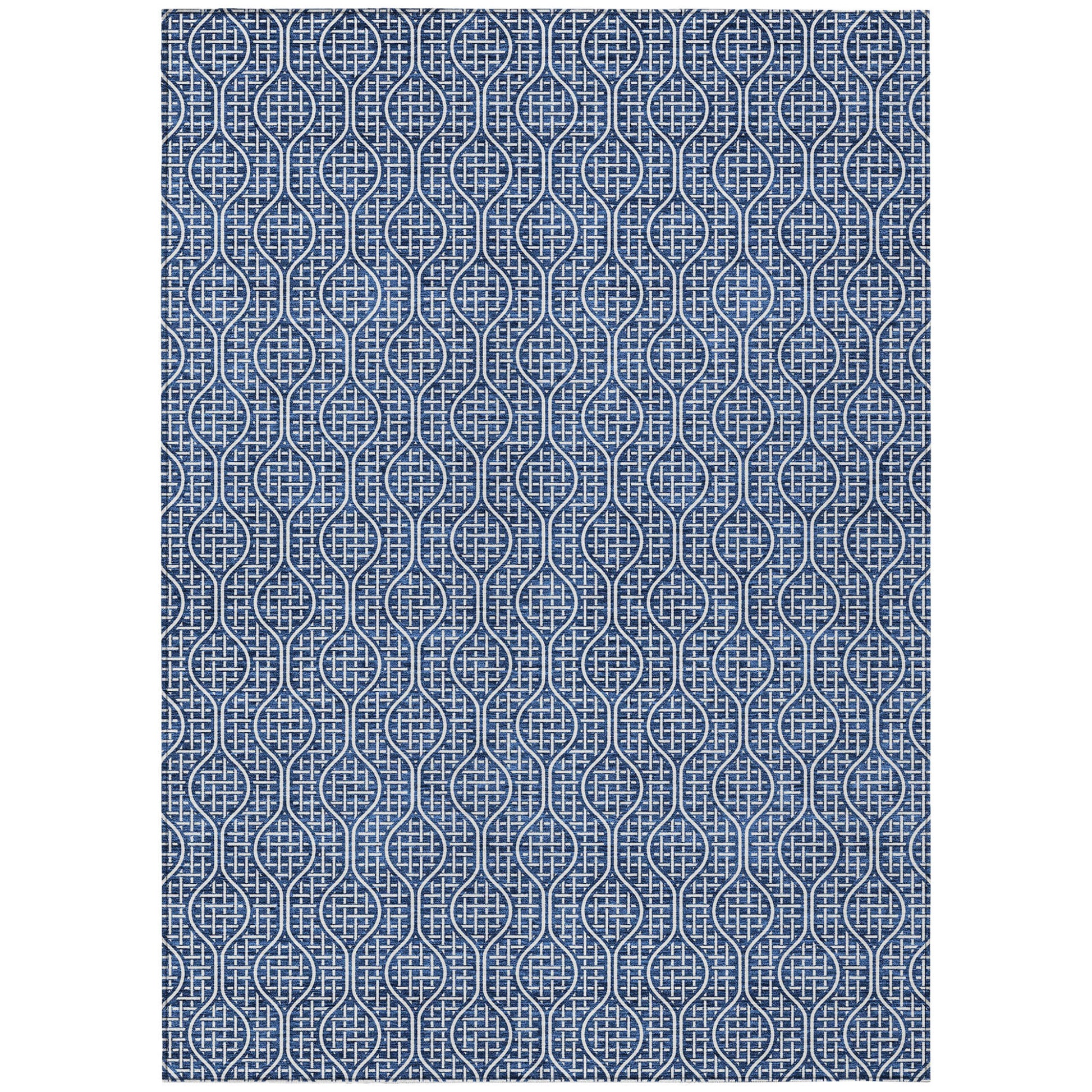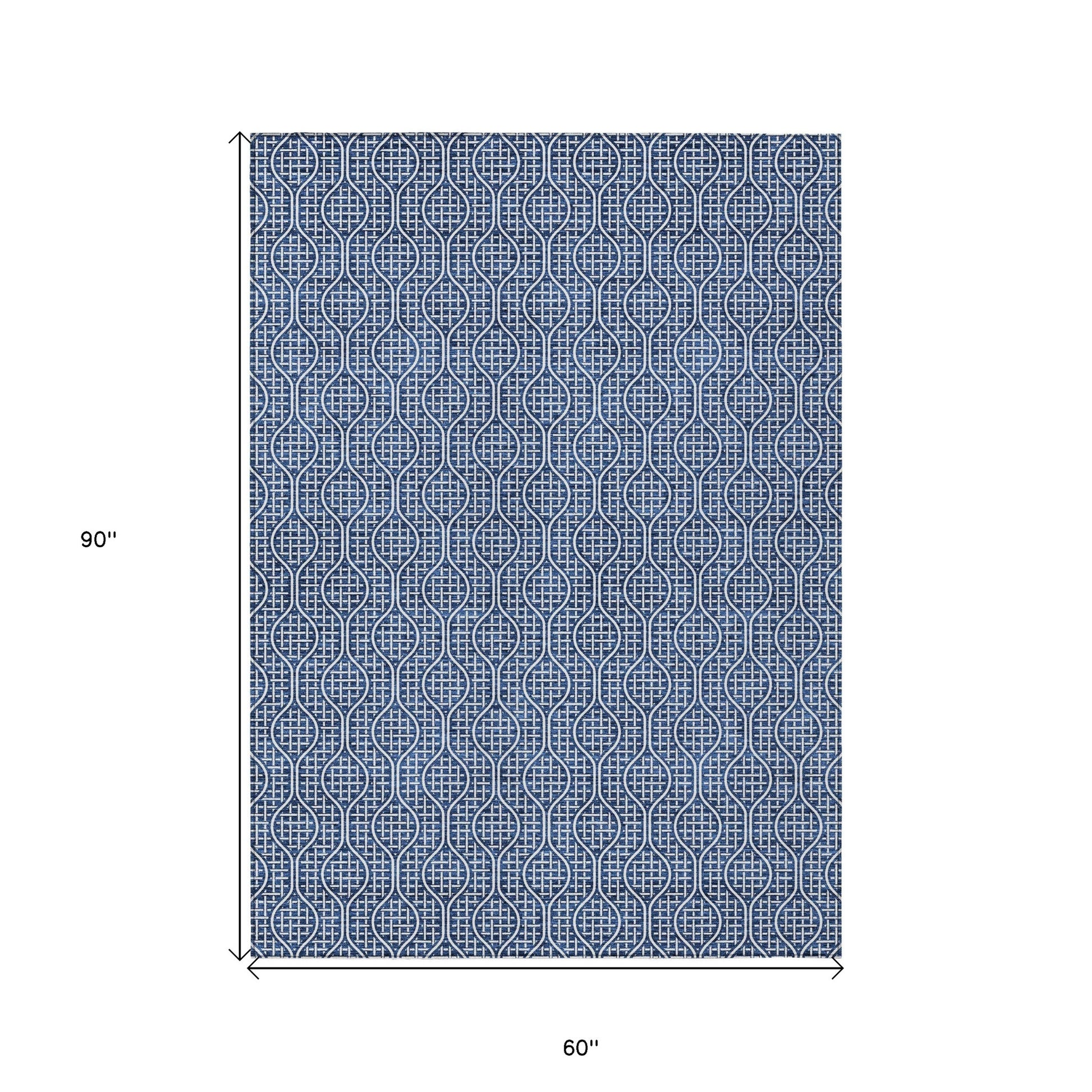 Tabselect Home Line 5' X 8' Navy Blue And Ivory Geometric Washable Indoor Outdoor Area Rug