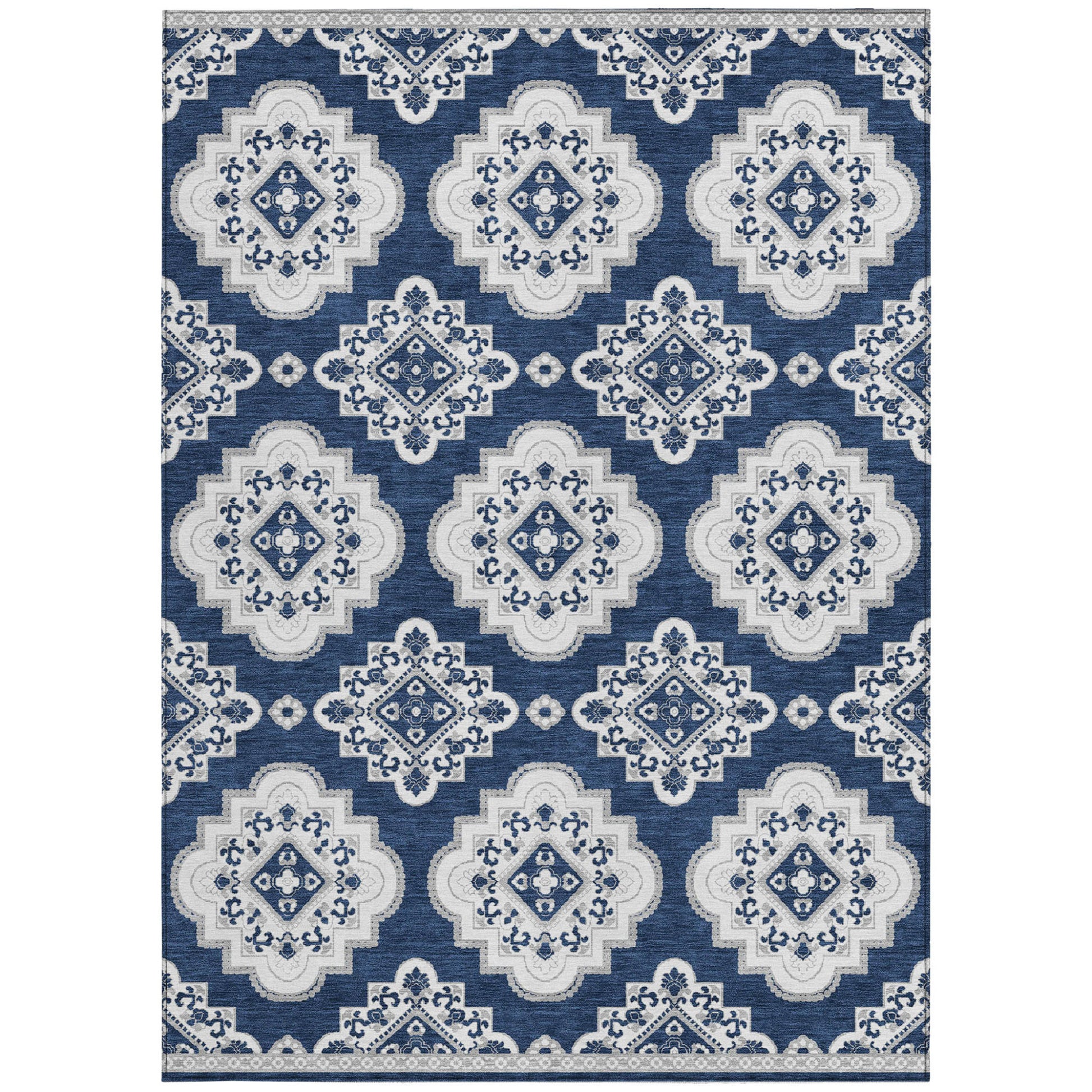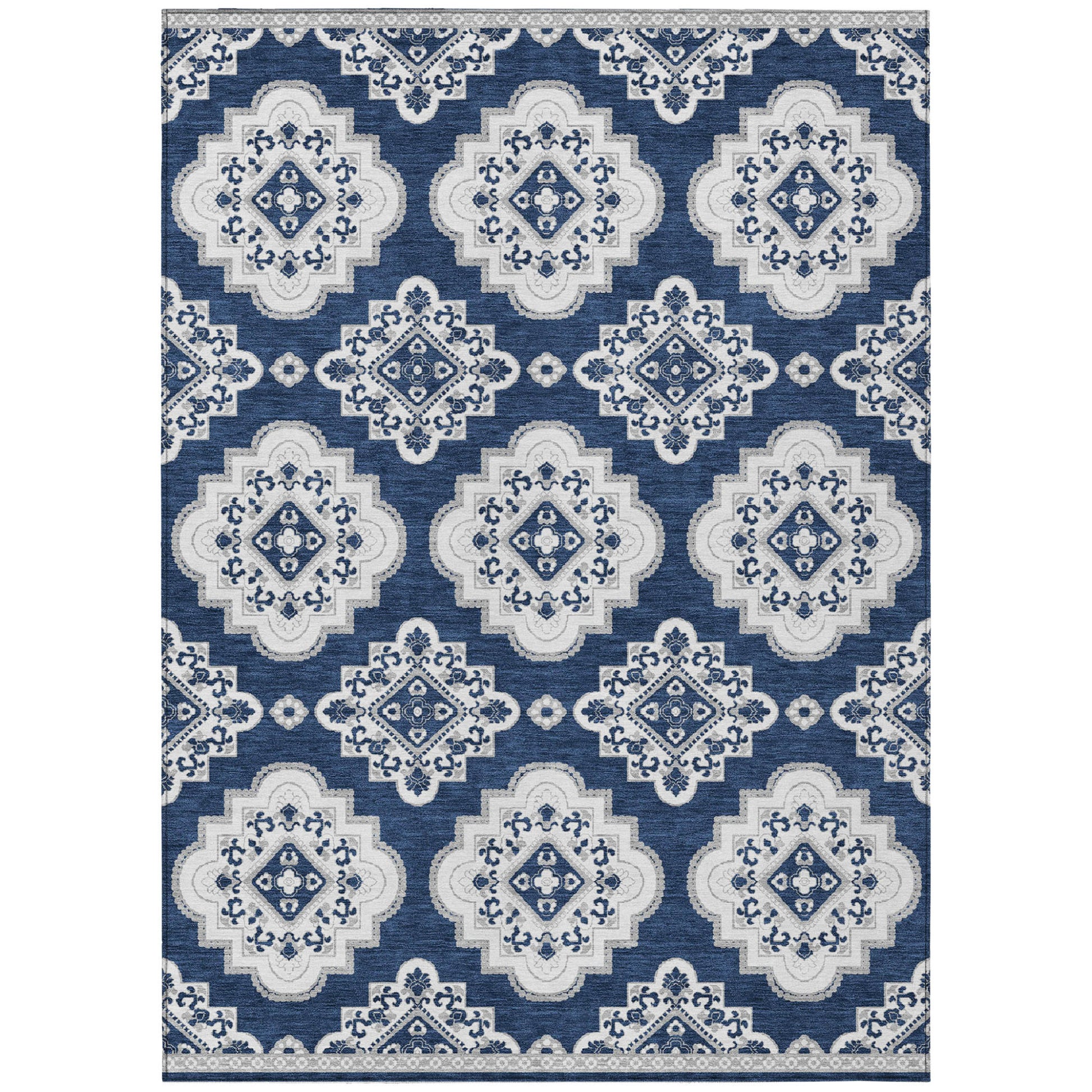 Tabselect Home Line 5' X 8' Navy Blue And Ivory Medallion Washable Indoor Outdoor Area Rug
