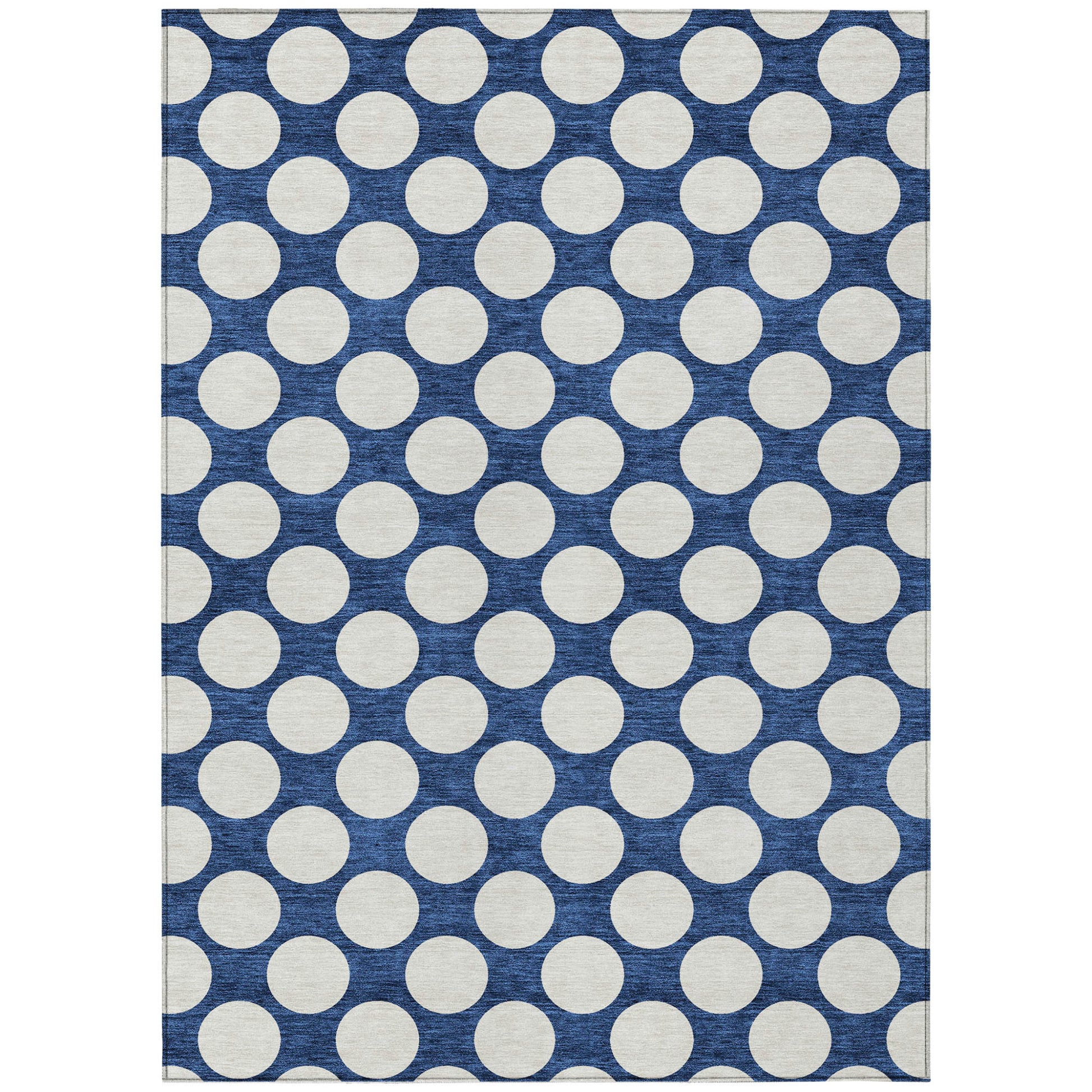 Tabselect Home Line 5' X 8' Navy Blue And Ivory Polka Dot Washable Indoor Outdoor Area Rug