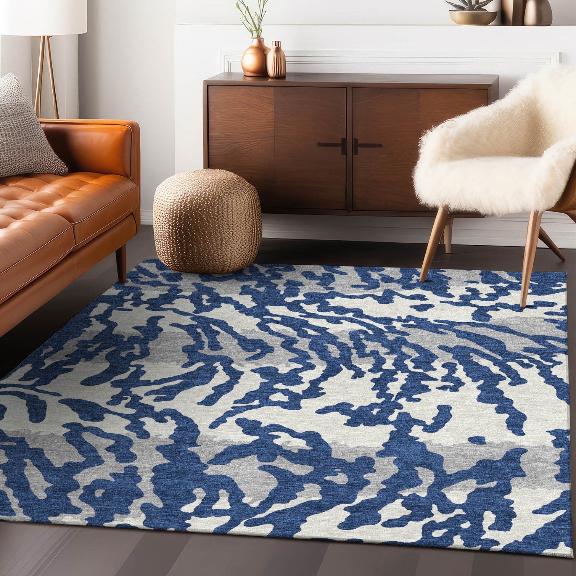 Tabselect Home Line 5' X 8' Navy Blue Gray And Ivory Animal Print Washable Indoor Outdoor Area Rug