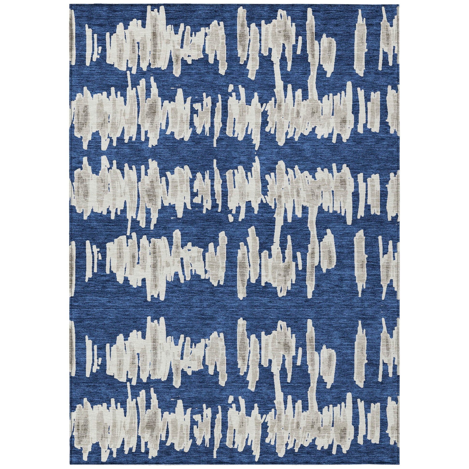 Tabselect Home Line 5' X 8' Navy Blue Gray And Ivory Striped Washable Indoor Outdoor Area Rug