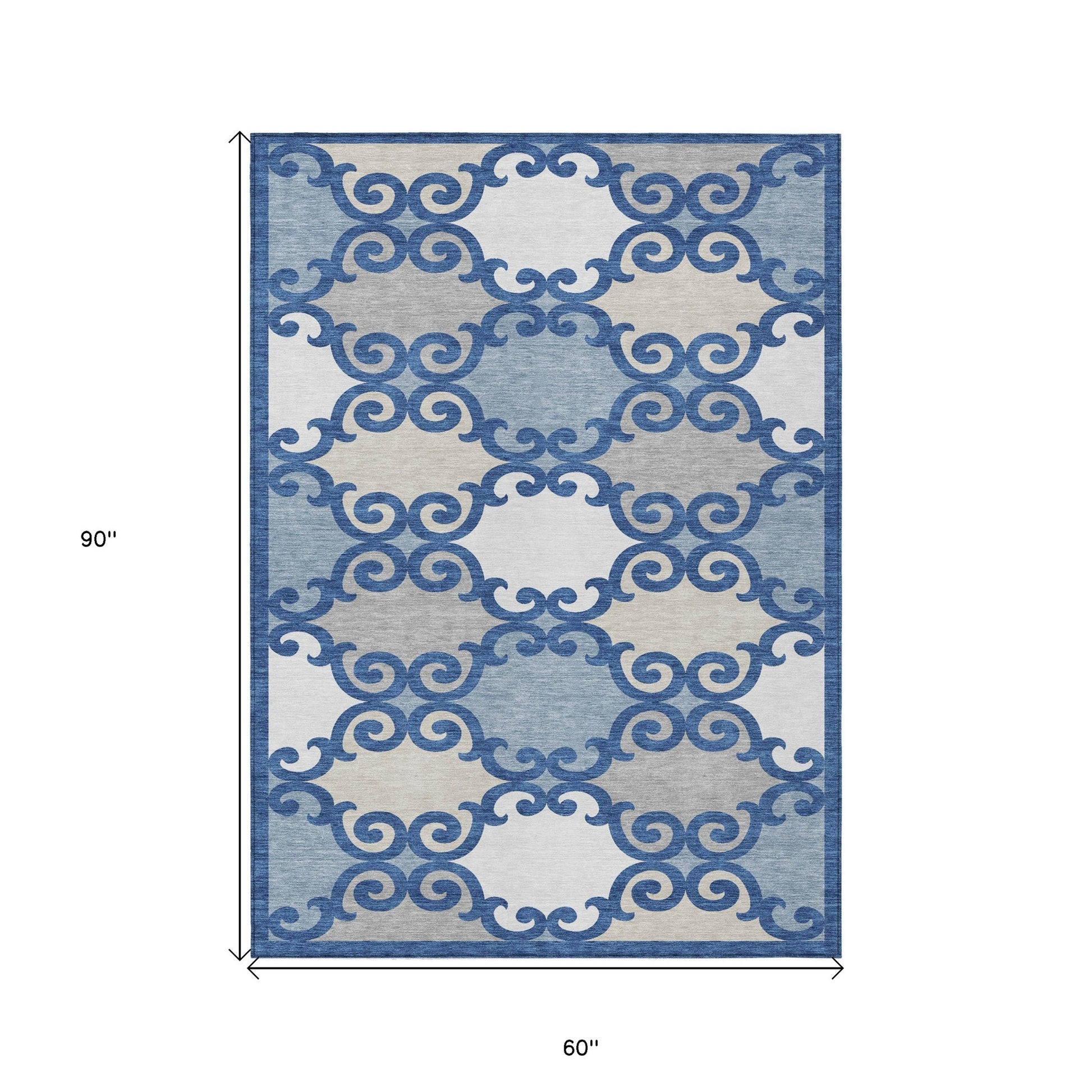 Tabselect Home Line 5' X 8' Navy Blue Gray And Ivory Trellis Washable Indoor Outdoor Area Rug