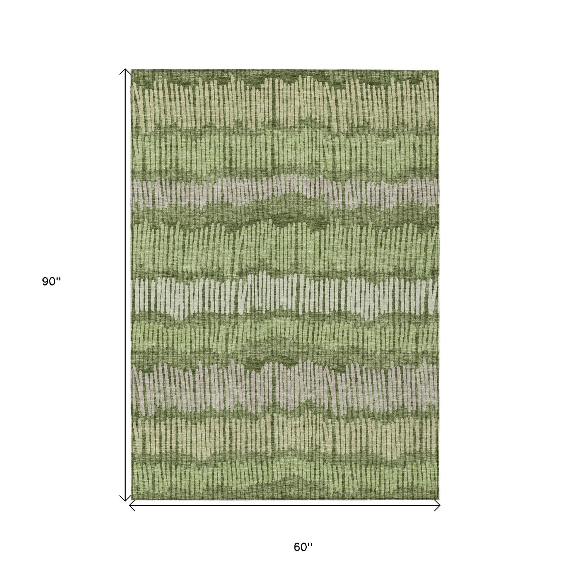 Tabselect Home Line 5' X 8' Olive Green And Gray Striped Washable Indoor Outdoor Area Rug