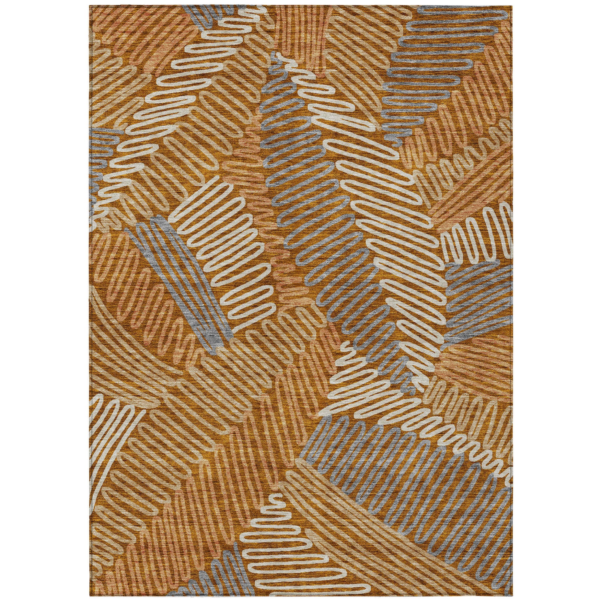 Tabselect Home Line 5' X 8' Orange Beige And Gray Floral Washable Indoor Outdoor Area Rug