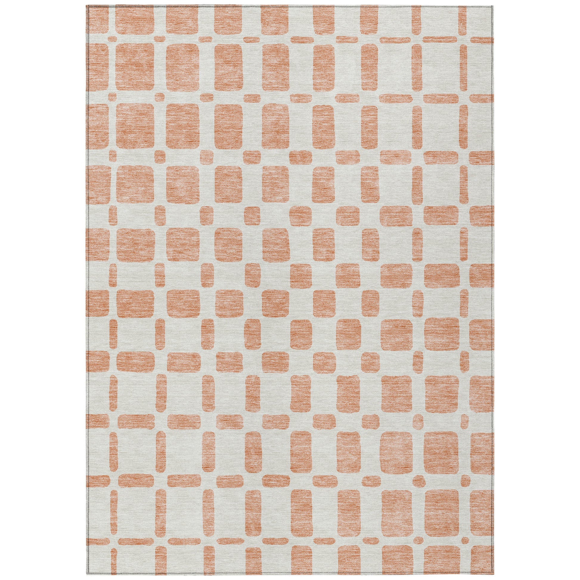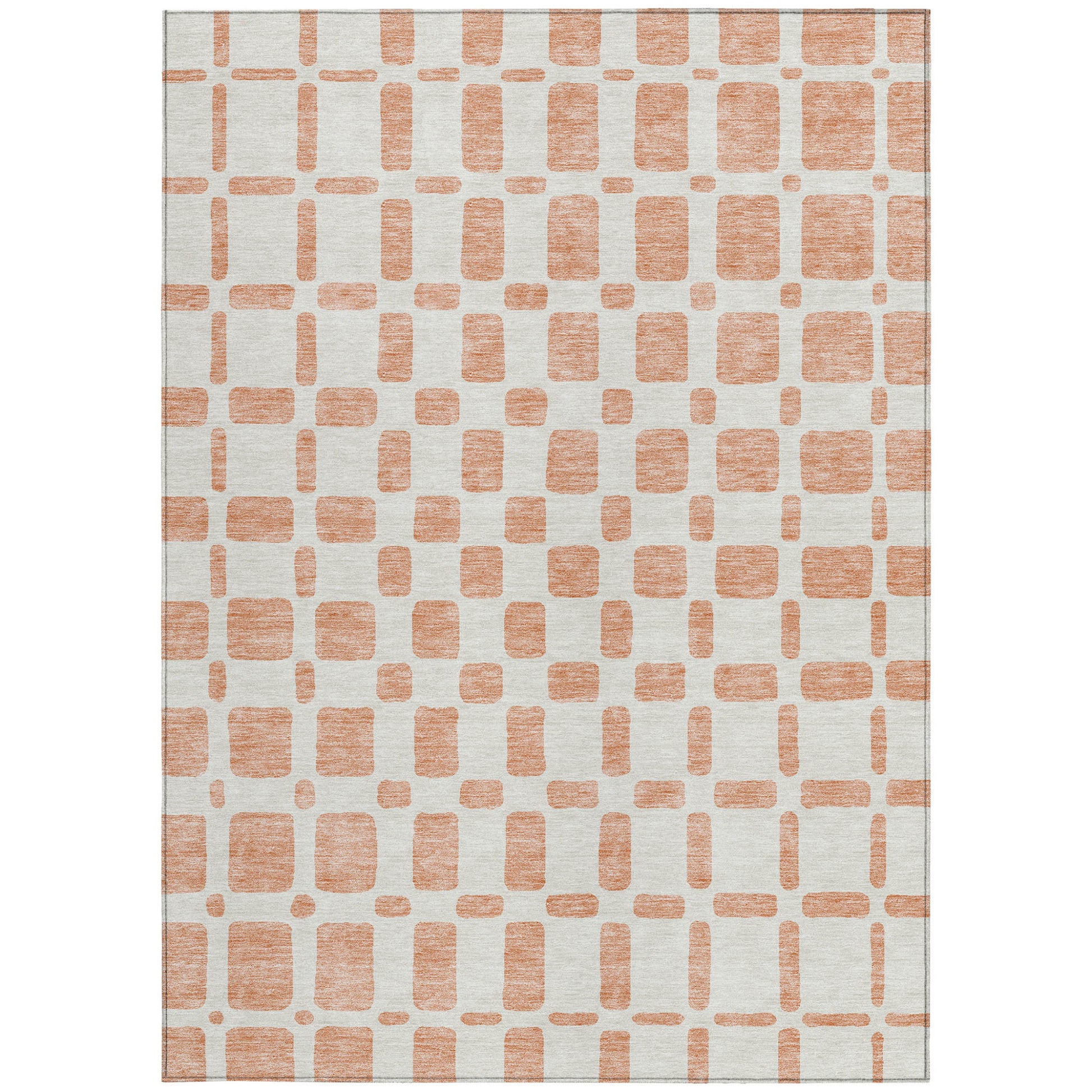 Tabselect Home Line 5' X 8' Peach And Beige Geometric Washable Indoor Outdoor Area Rug