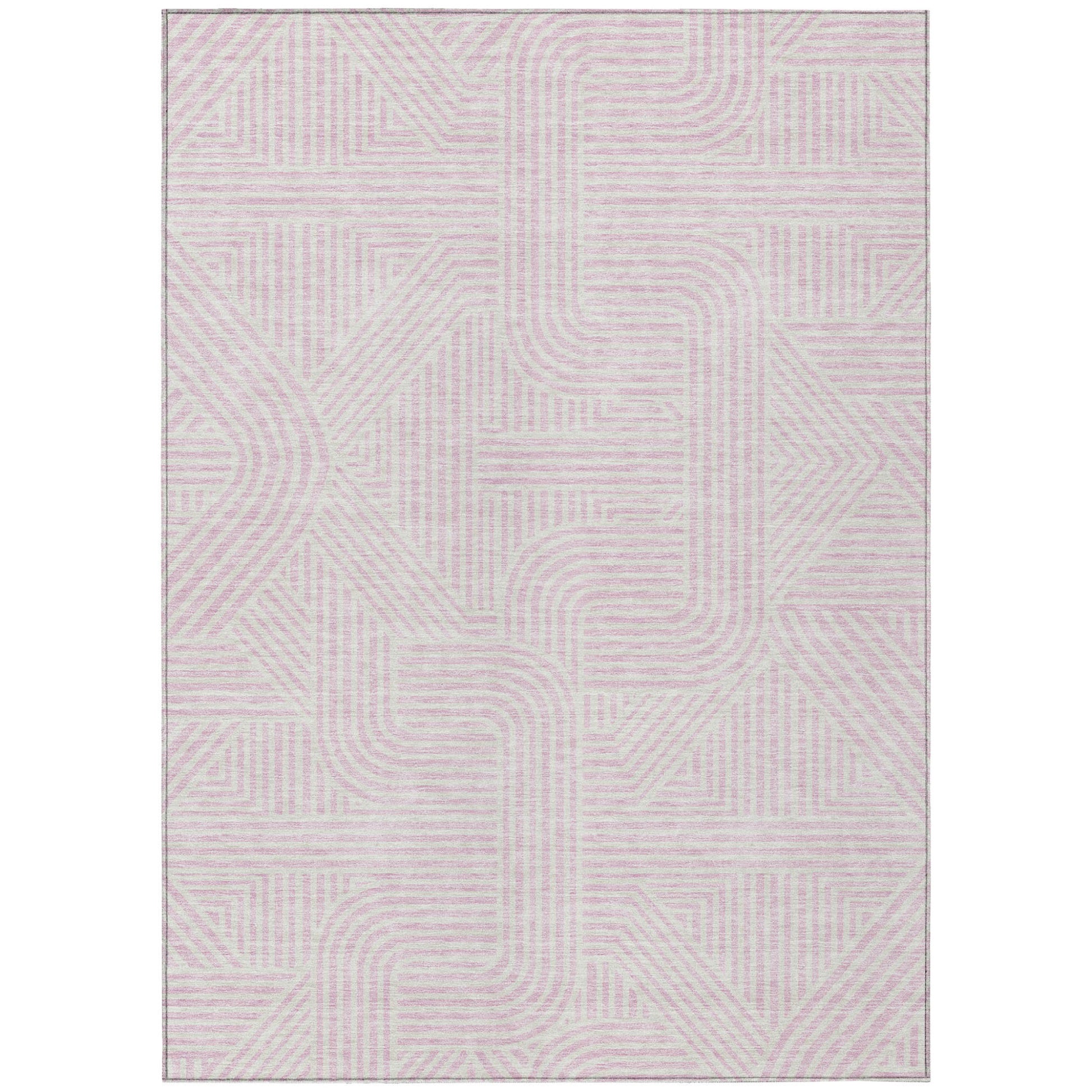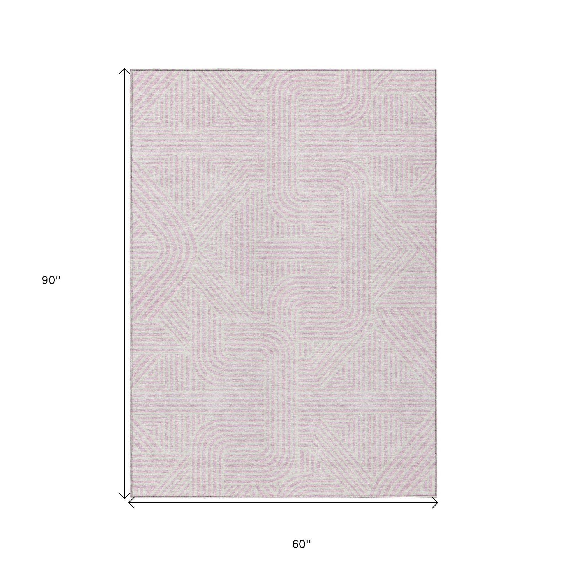 Tabselect Home Line 5' X 8' Pink And Ivory Abstract Washable Indoor Outdoor Area Rug