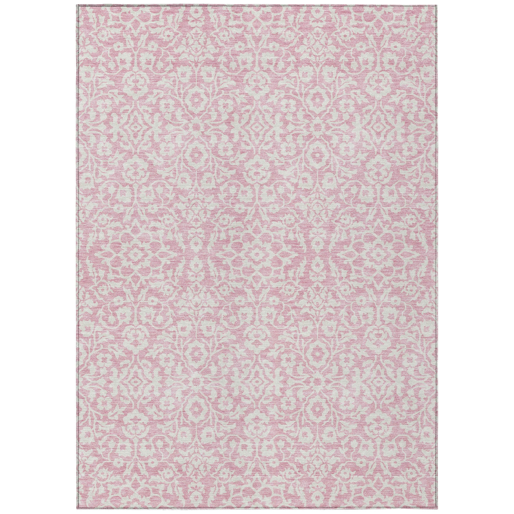 Tabselect Home Line 5' X 8' Pink And Ivory Damask Washable Indoor Outdoor Area Rug
