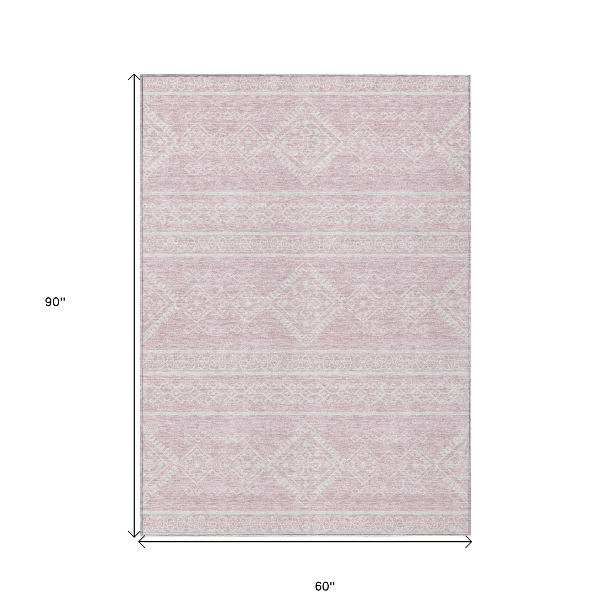Tabselect Home Line 5' X 8' Pink And Ivory Southwestern Washable Indoor Outdoor Area Rug