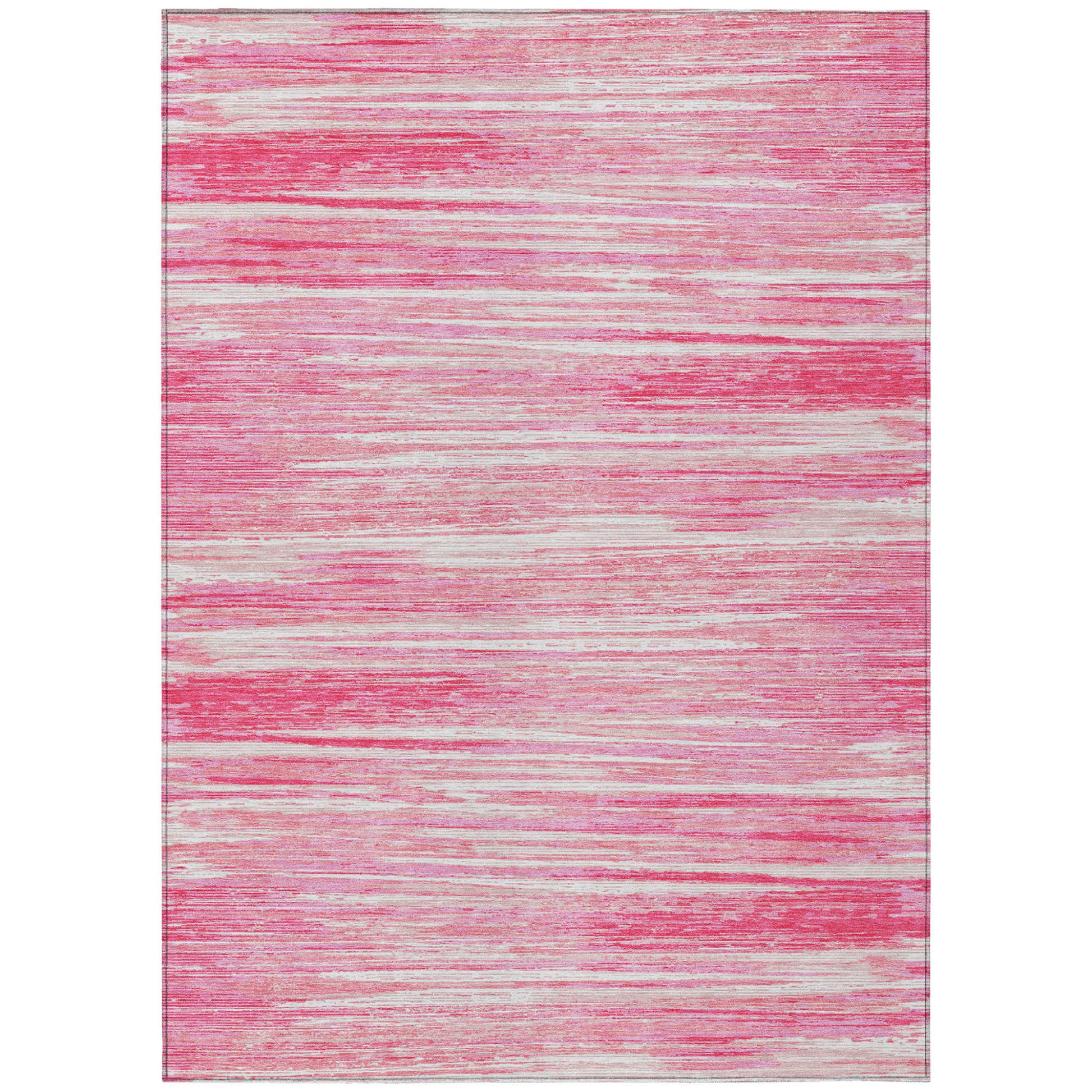 Tabselect Home Line 5' X 8' Pink And Ivory Striped Washable Indoor Outdoor Area Rug