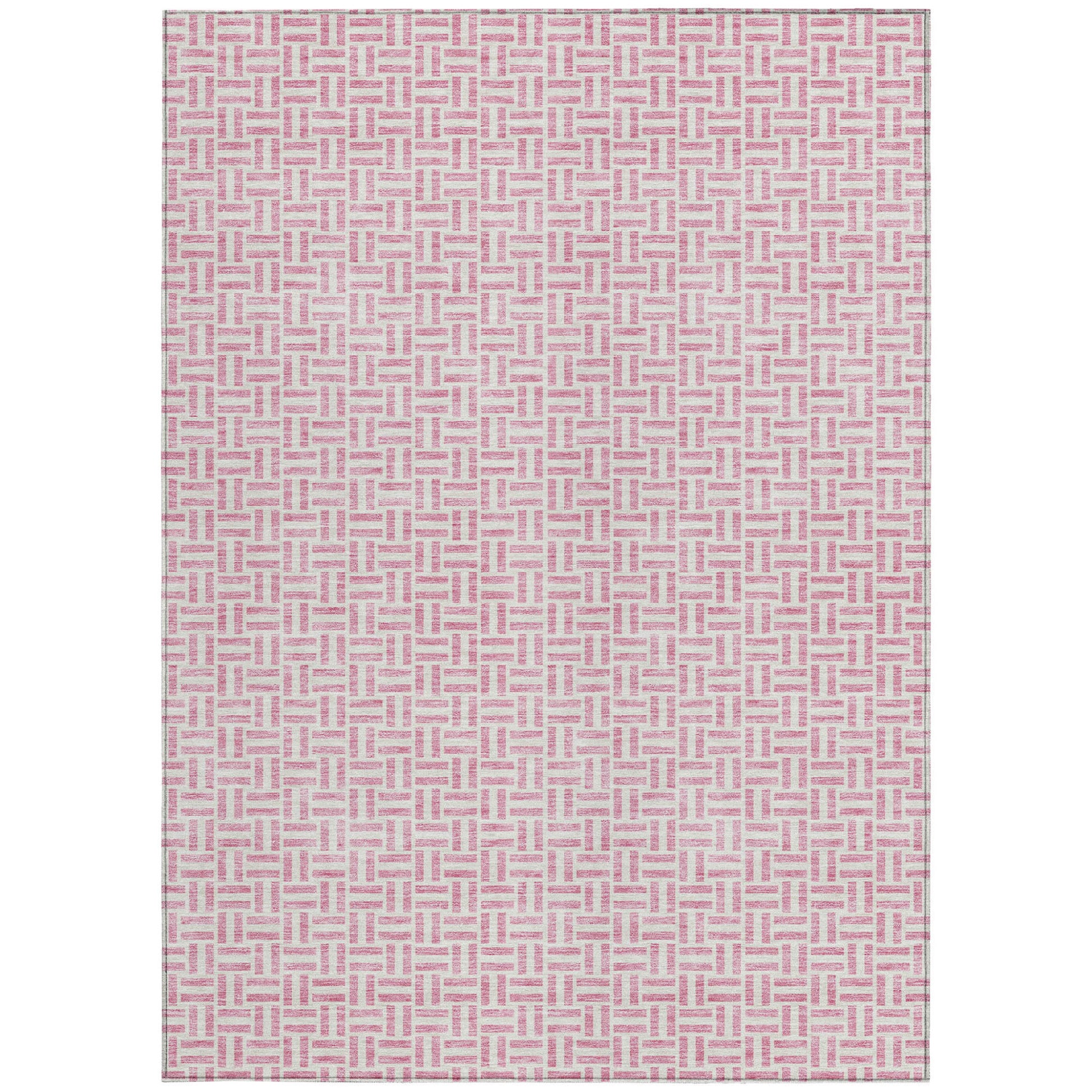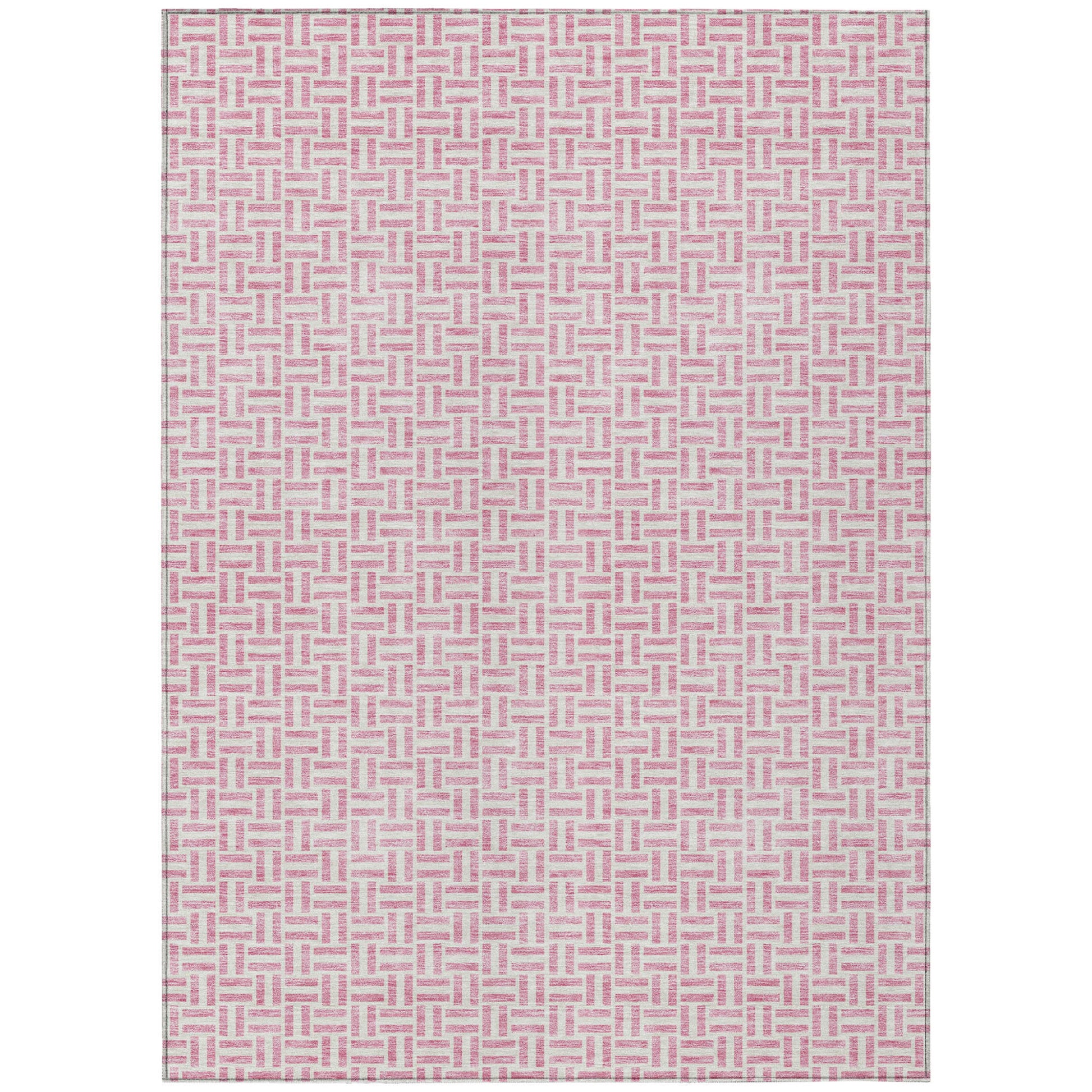Add great coloration and comfortable texture to your space with this 5-foot x 8-foot pink and silver geometric washable indoor outdoor area rug. This rectangle shaped rug features a geometric design that will work well both indoors or out. A classic shape marries with good looking design for your living room, hall, bedroom, porch, patio, or poolside. Ideal for outdoor spaces or high traffic areas with kids and pets, this rug is made from heavy duty polyester that is stain resistant to help repel water, dirt, and stains. Versatile in use, durable, and easy to maintain, this rug is an ideal solution to add a decorative and inviting touch to your indoor or outdoor space. 60-inch h x 90-inch w x 0.19-inch d.