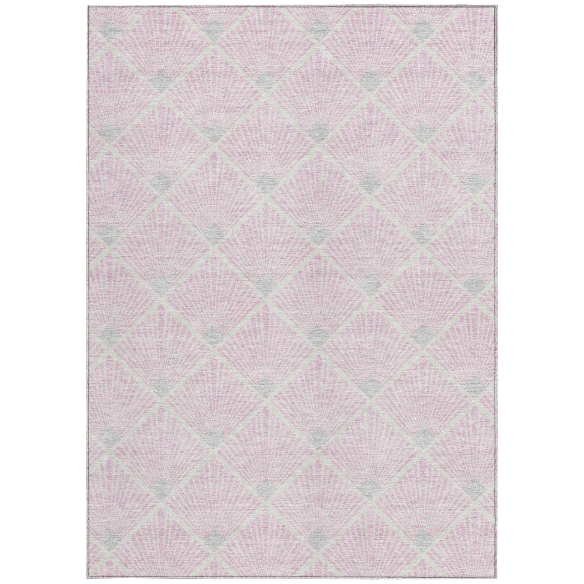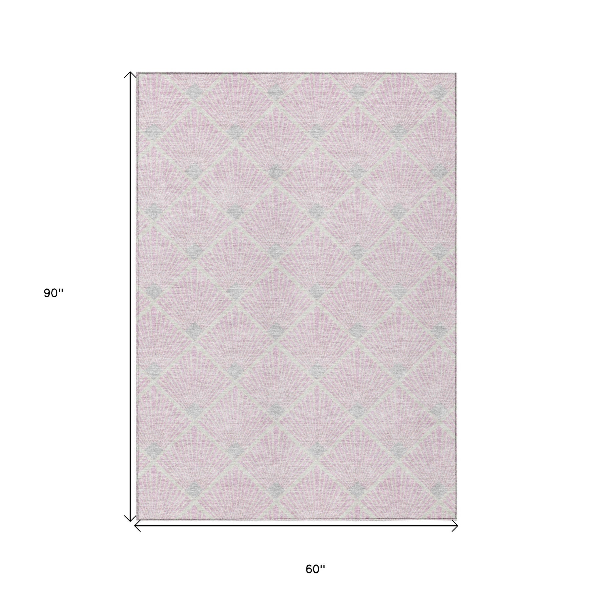 Tabselect Home Line 5' X 8' Pink Gray And Ivory Geometric Washable Indoor Outdoor Area Rug