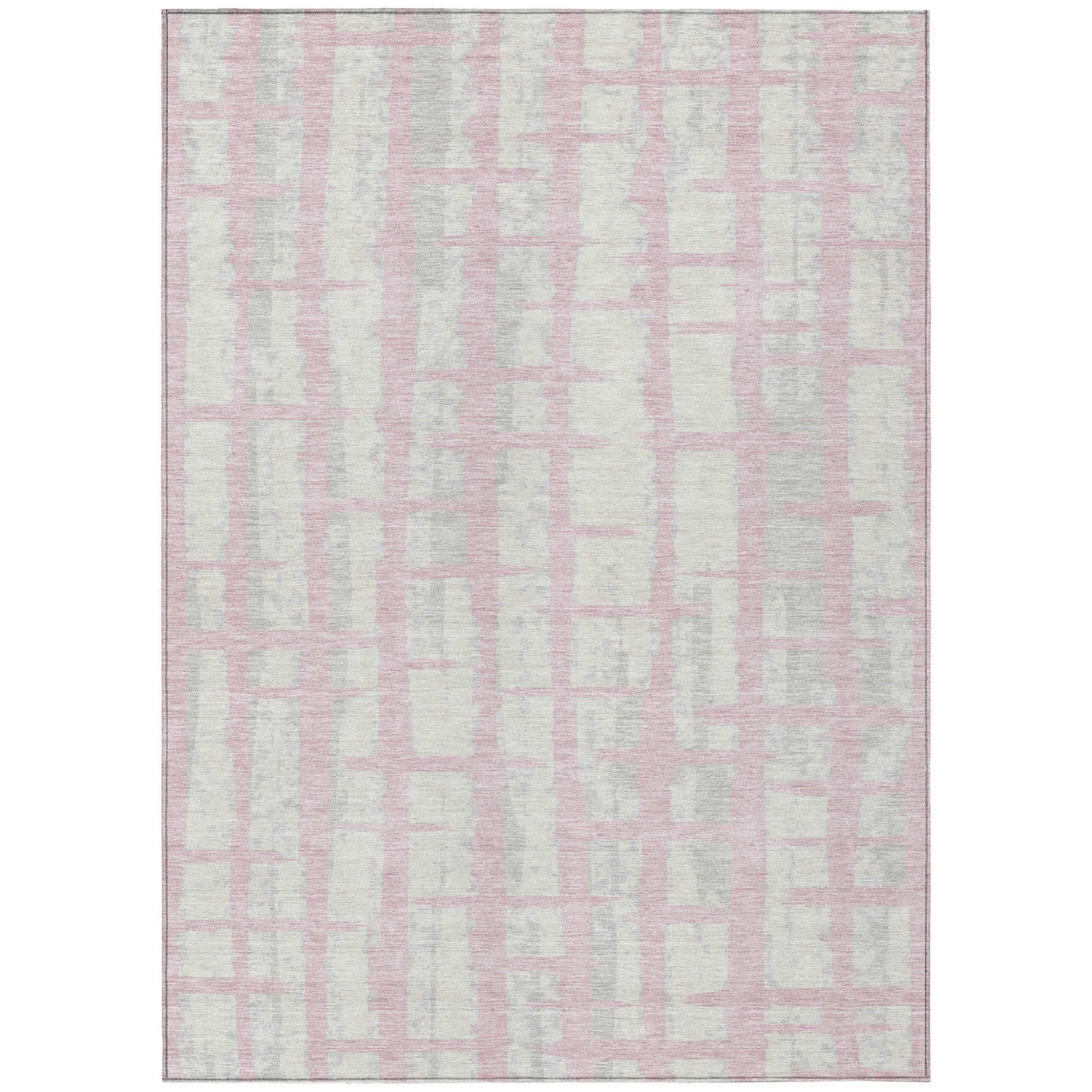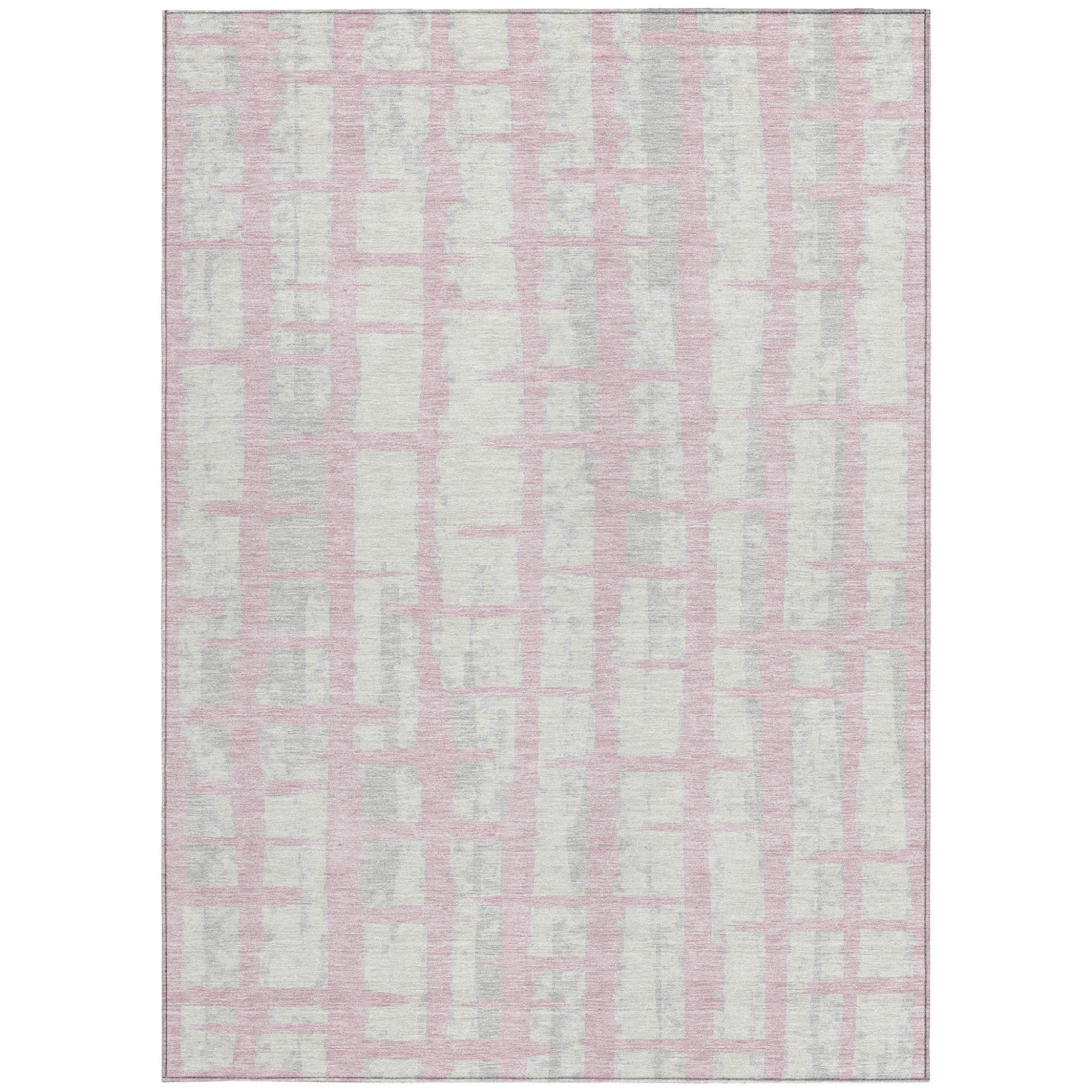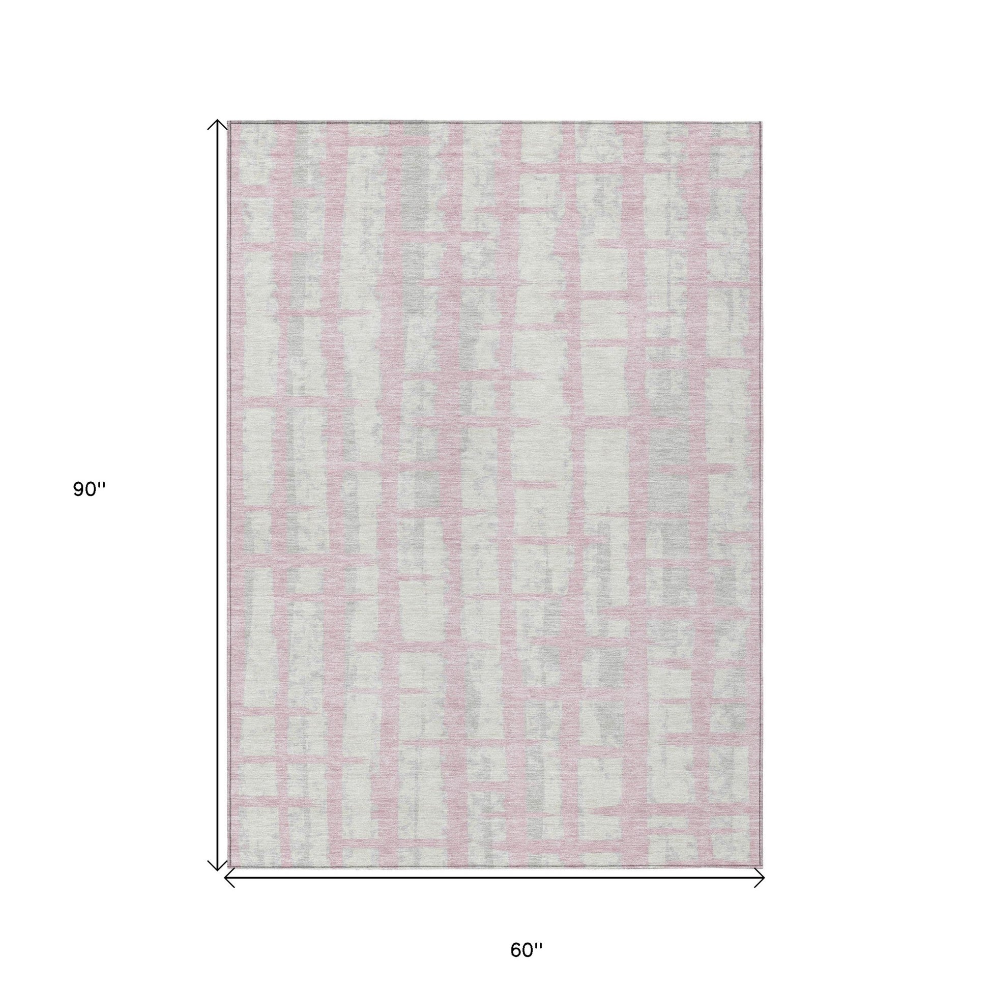 Tabselect Home Line 5' X 8' Pink Gray And Ivory Striped Washable Indoor Outdoor Area Rug