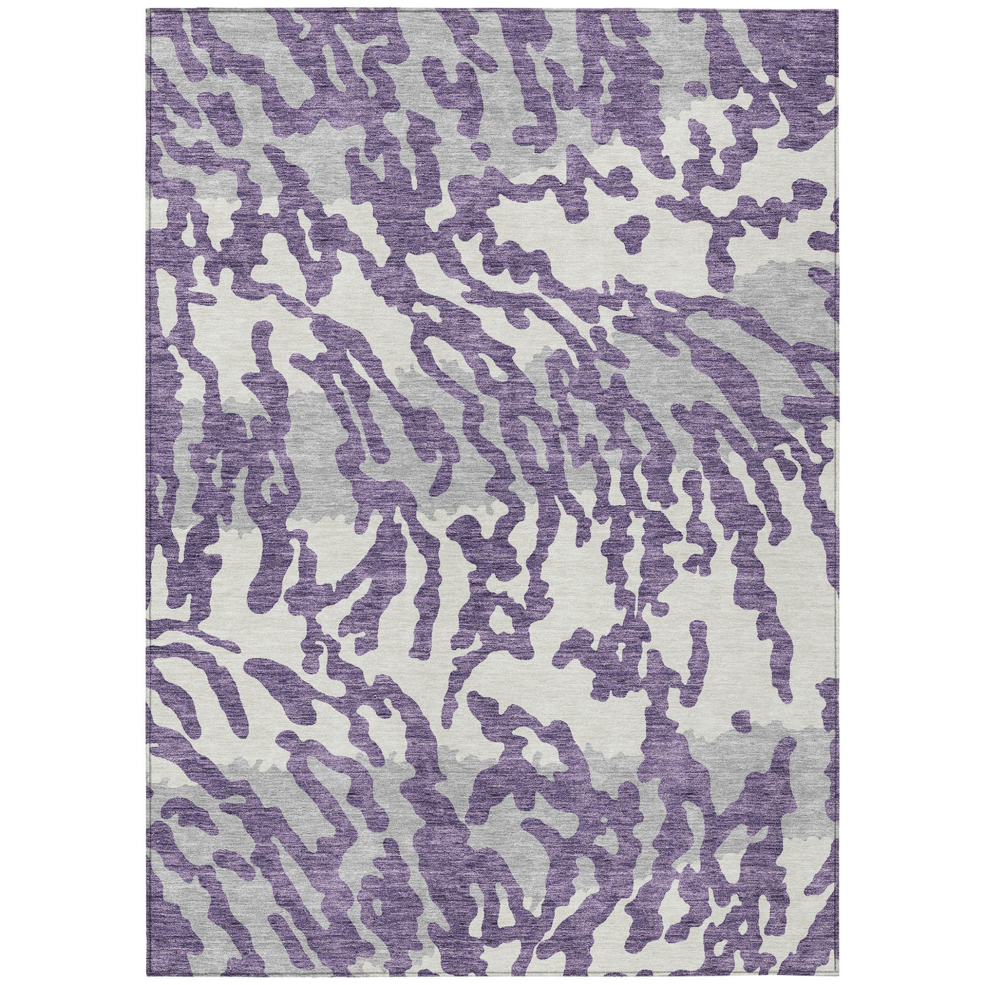 Tabselect Home Line 5' X 8' Purple Gray And Ivory Animal Print Washable Indoor Outdoor Area Rug