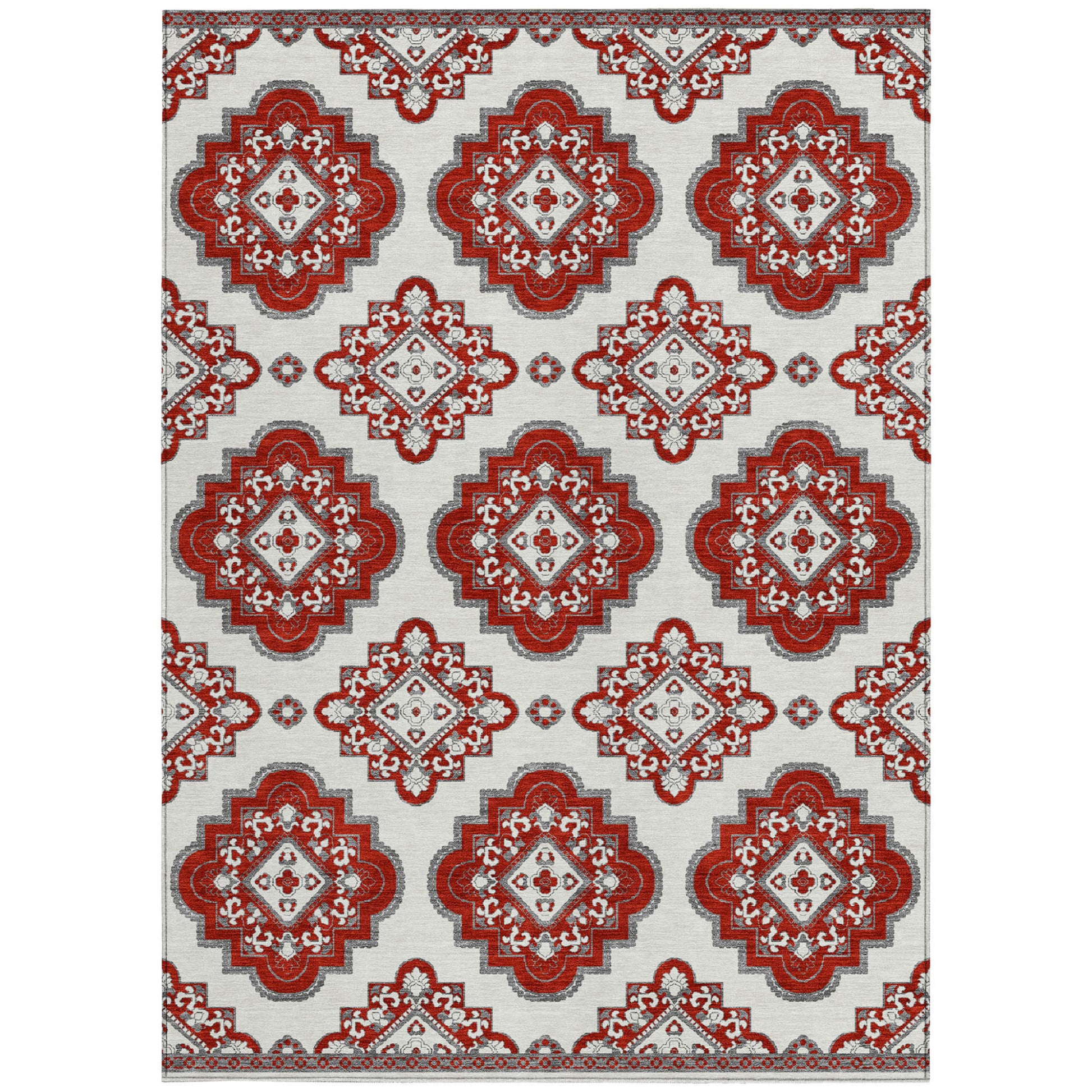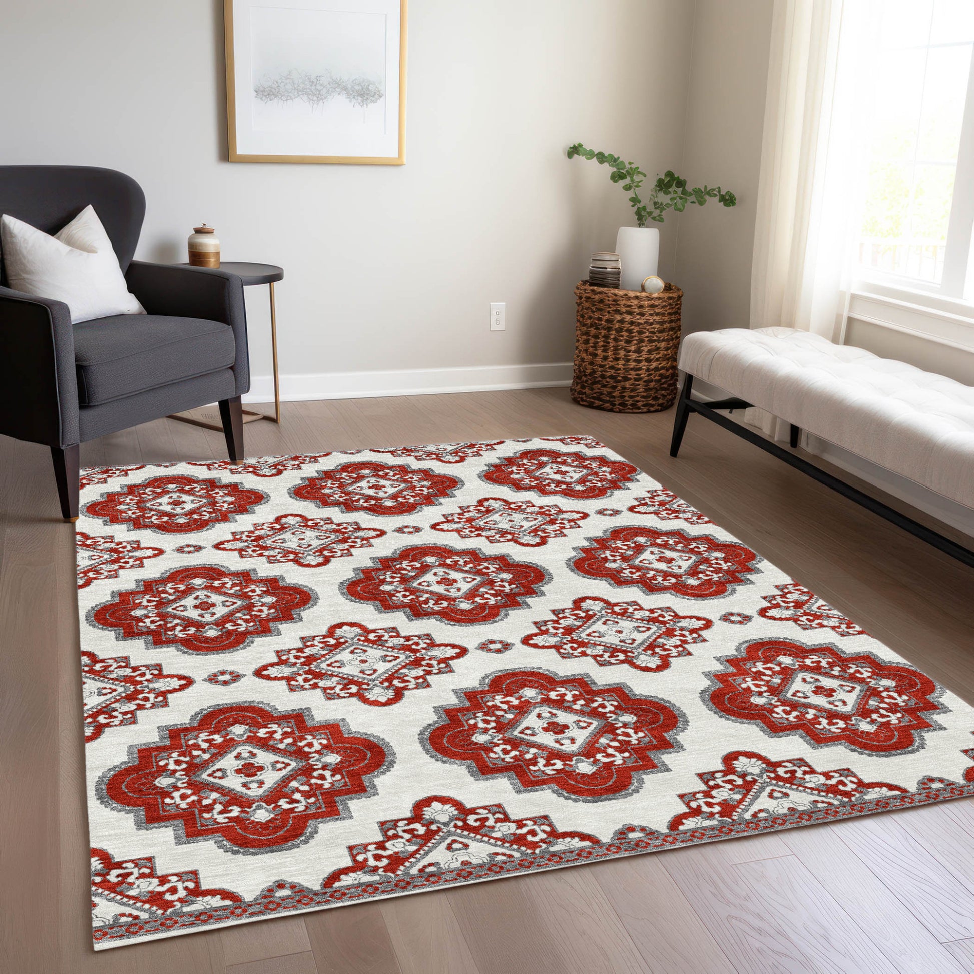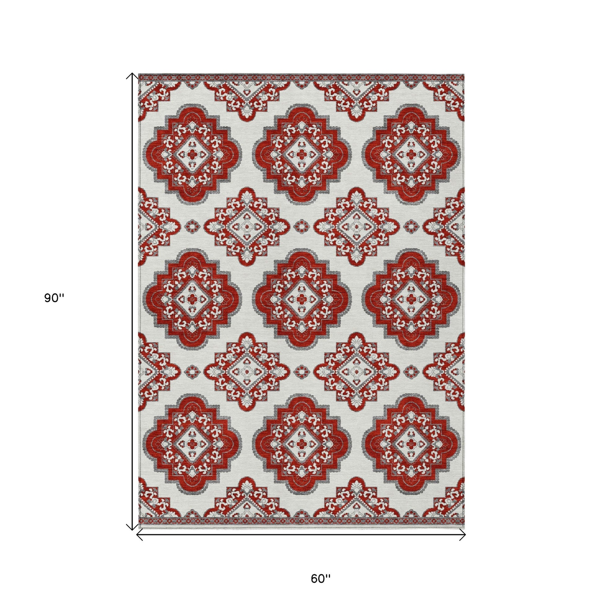 Tabselect Home Line 5' X 8' Red And Beige Medallion Washable Indoor Outdoor Area Rug