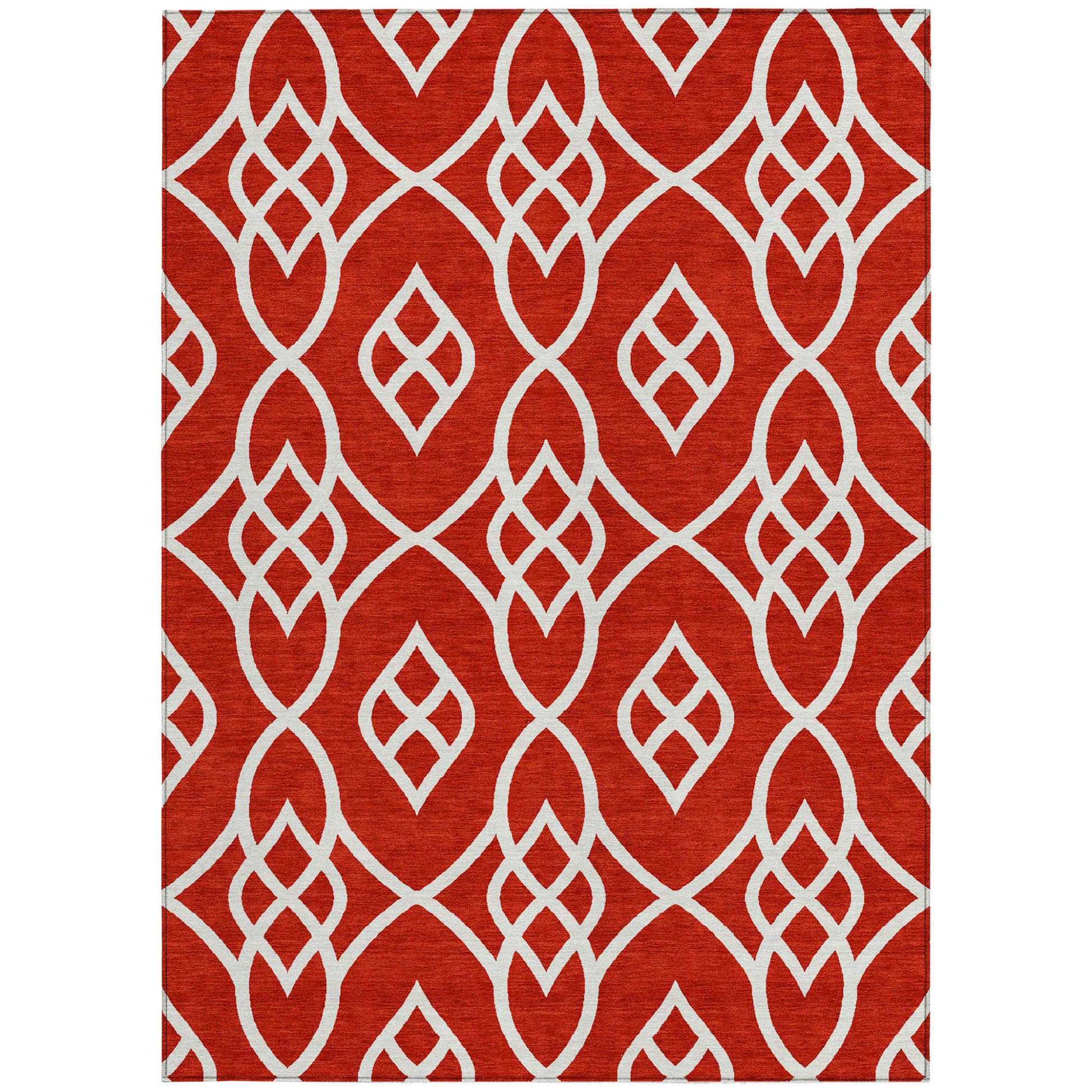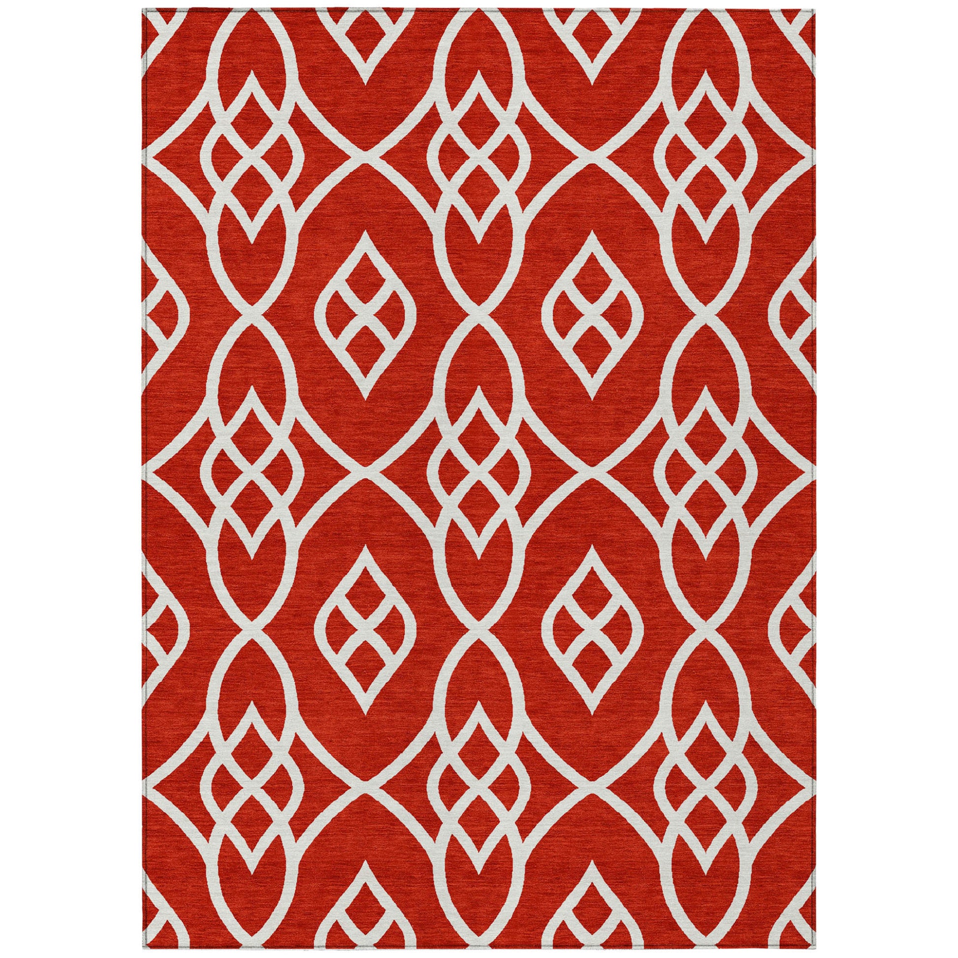 Tabselect Home Line 5' X 8' Red And Ivory Trellis Washable Indoor Outdoor Area Rug