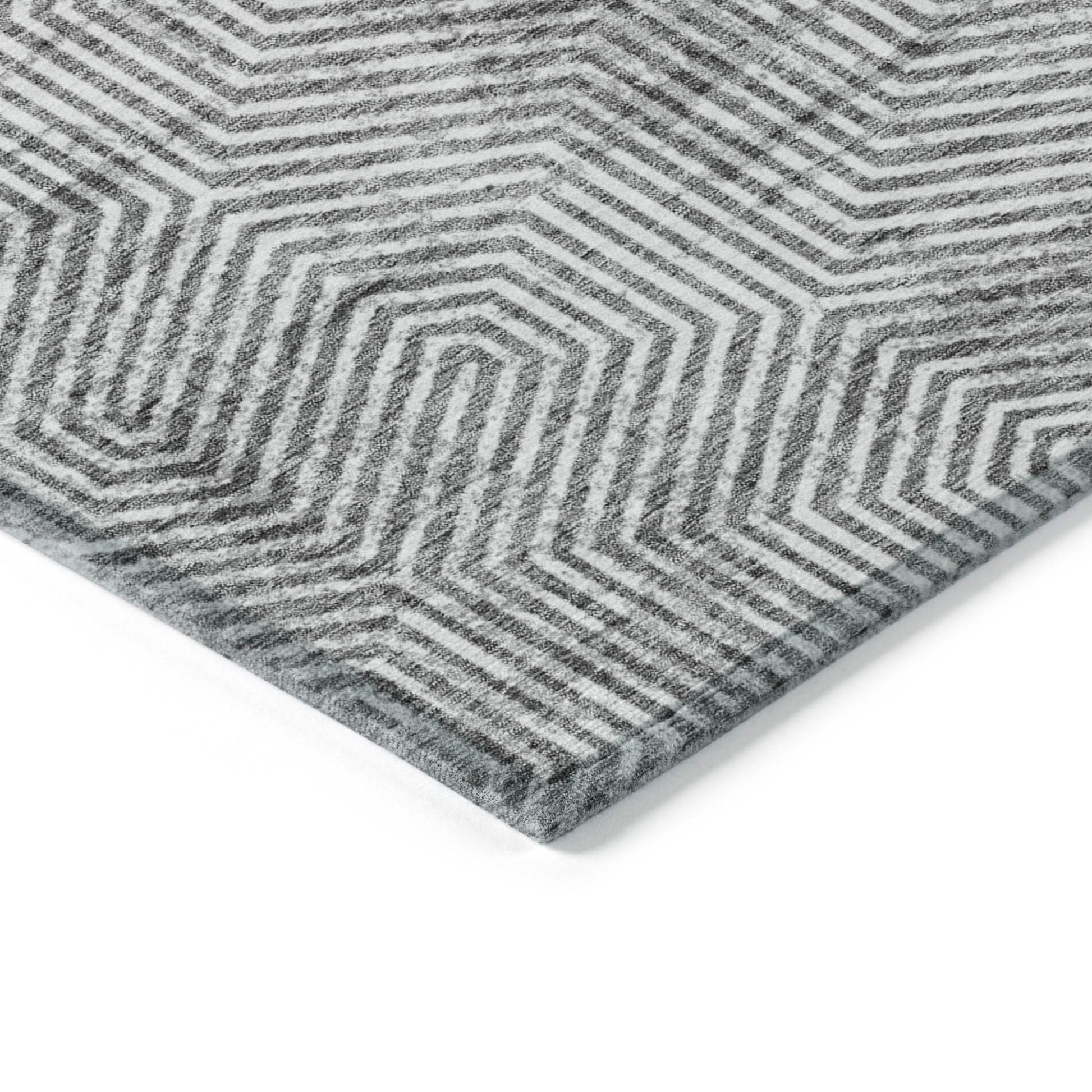 Tabselect Home Line 5' X 8' Silver And Gray Geometric Washable Indoor Outdoor Area Rug